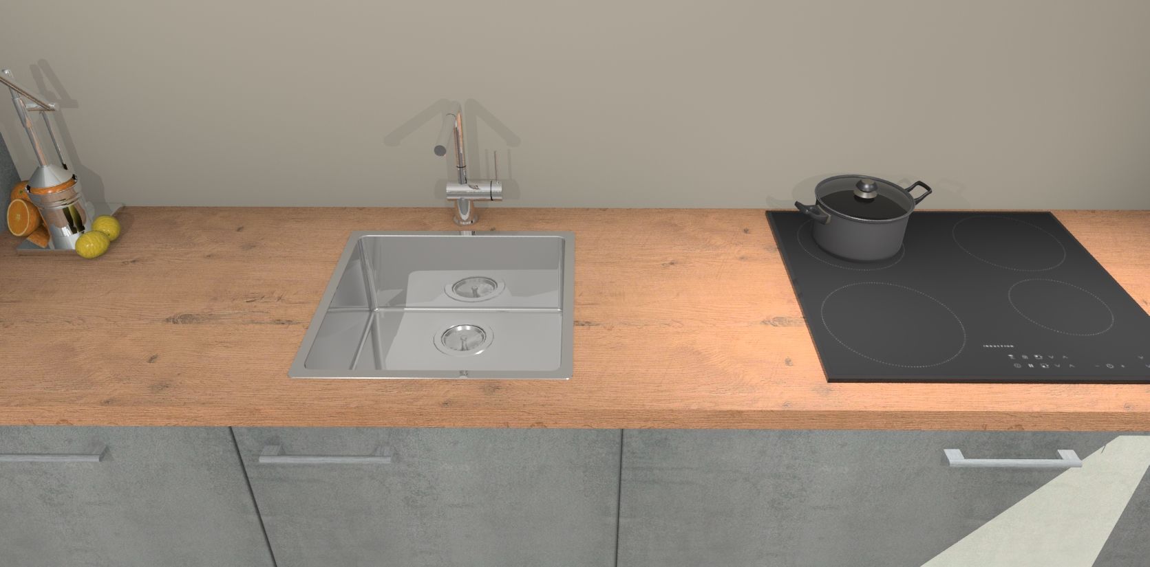• Uitsparing van kookplaat, spoelbak en kraan dient u zelf te verzorgen.