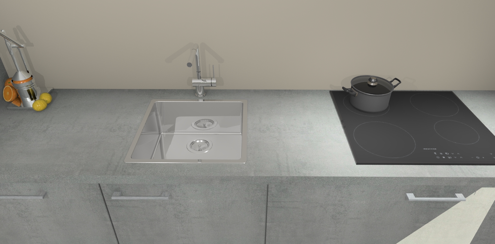 • De spoelbak is nog niet in gevreesd, dit dient tijdens het werk gedaan te worden