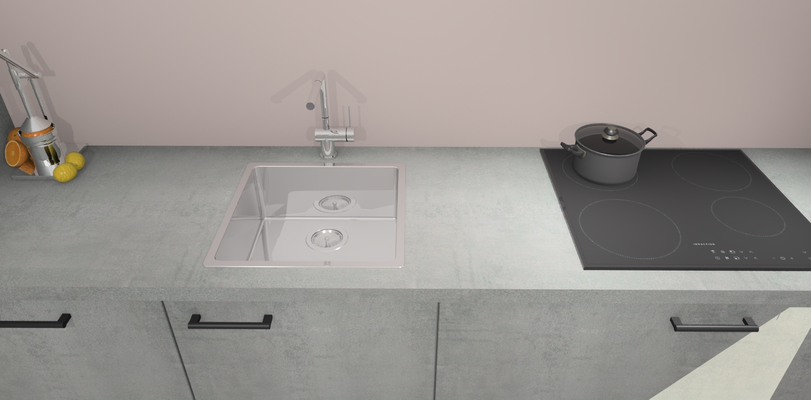 • De spoelbak is nog niet in gevreesd, dit dient tijdens het werk gedaan te worden