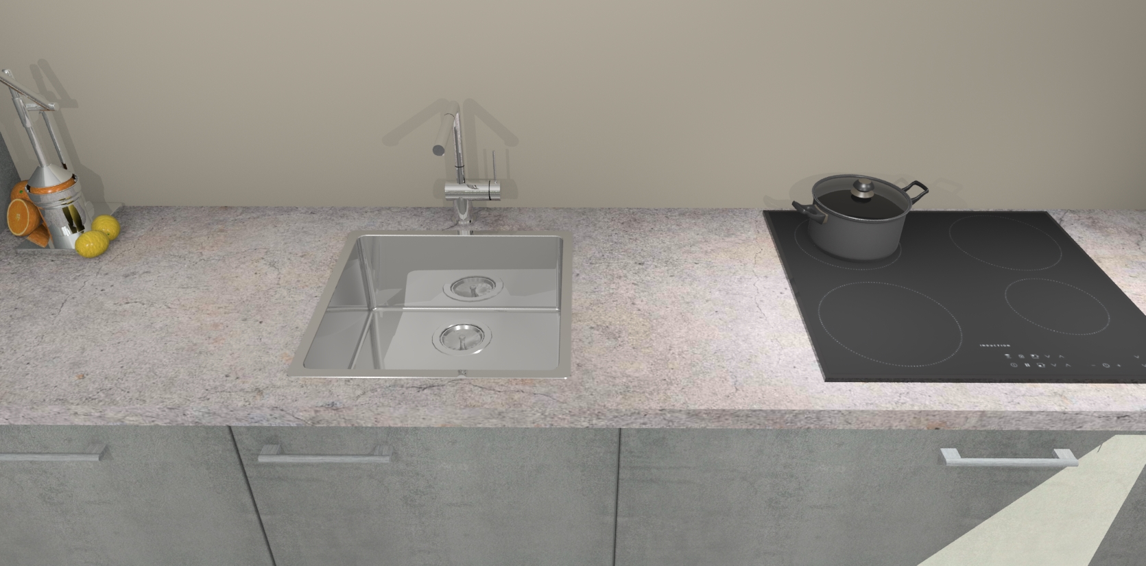 Inclusief plinten, stelpoten en werkblad