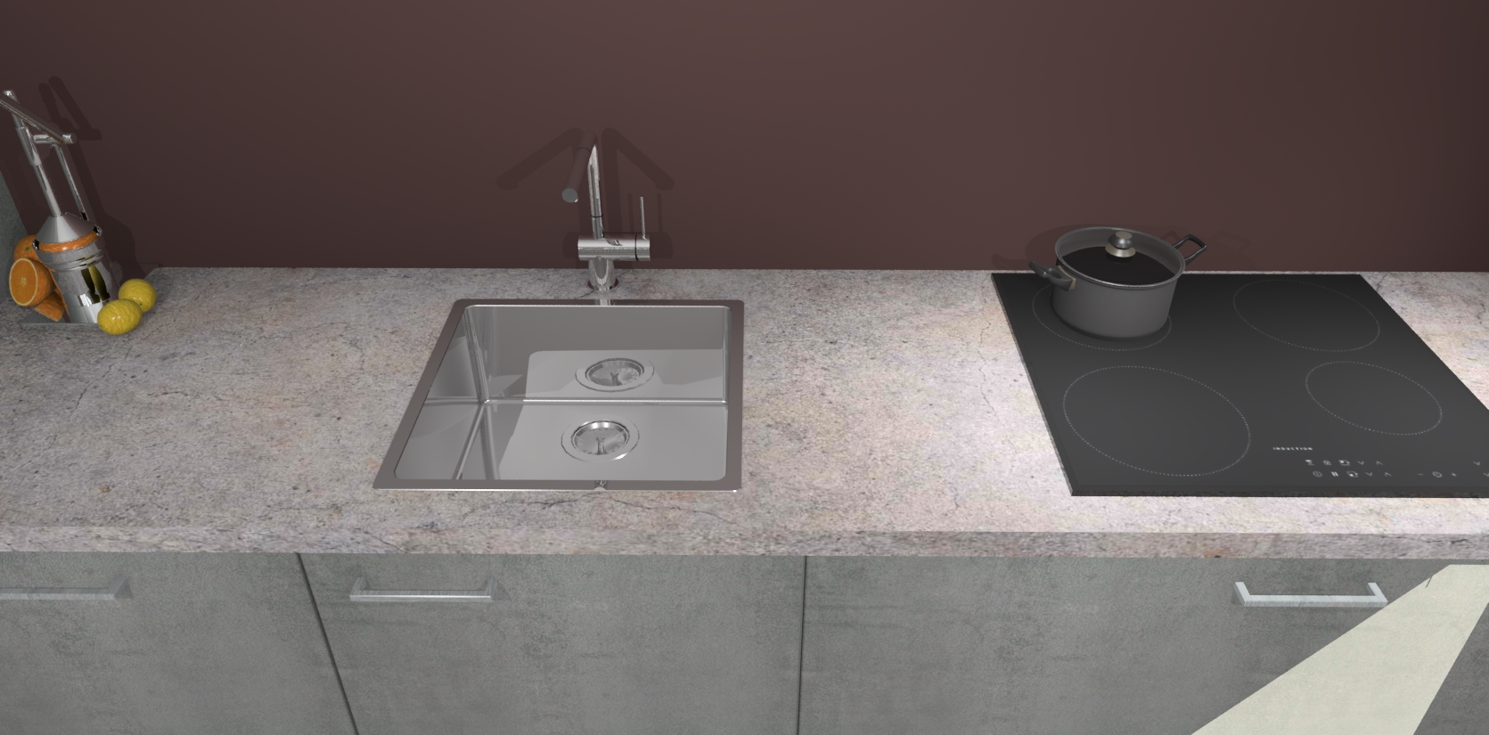 • Uitsparing van kookplaat, spoelbak en kraan dient u zelf te verzorgen.