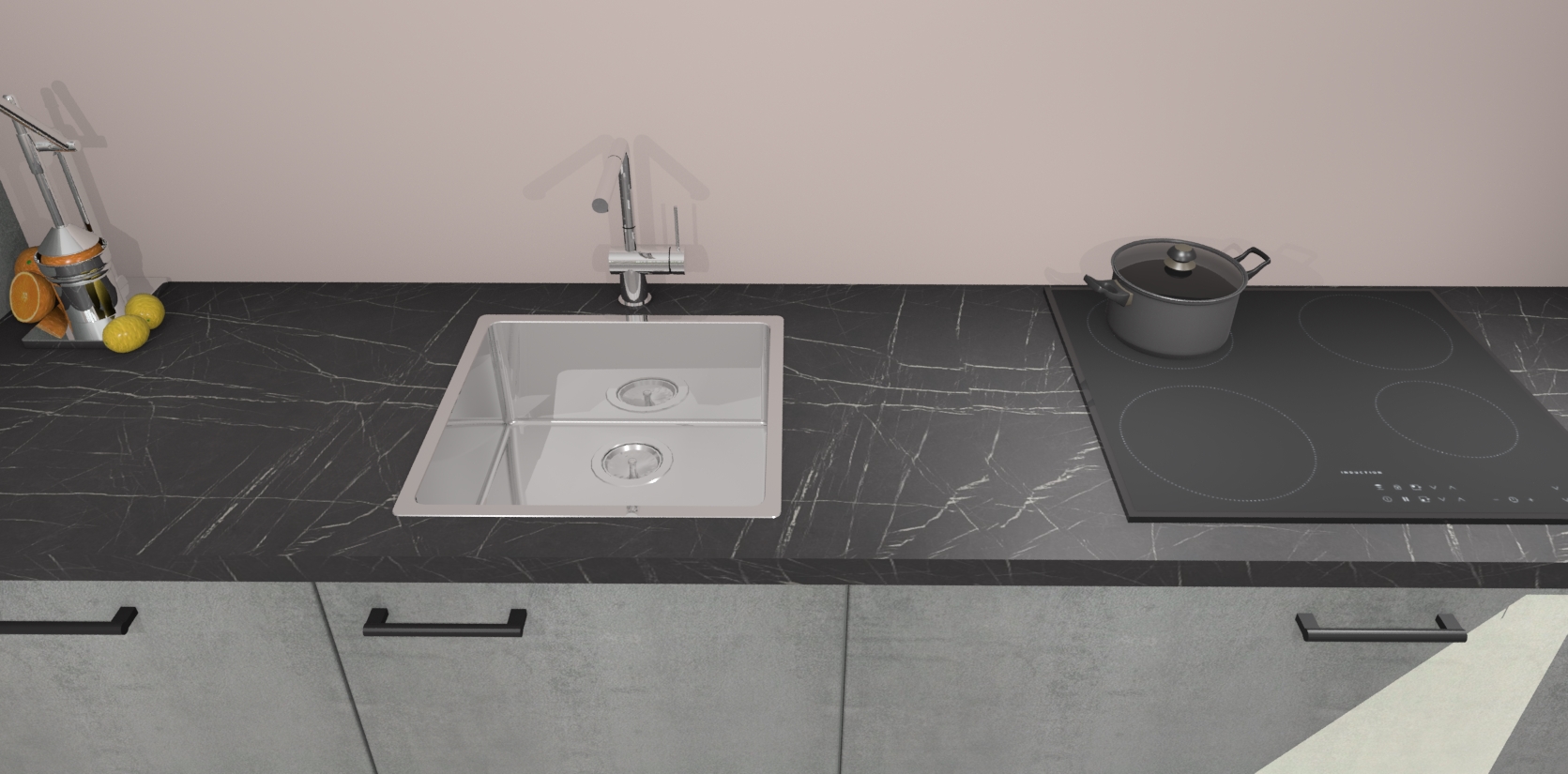 - De spoelbak is nog niet in gevreesd, dit dient tijdens het werk gedaan te worden