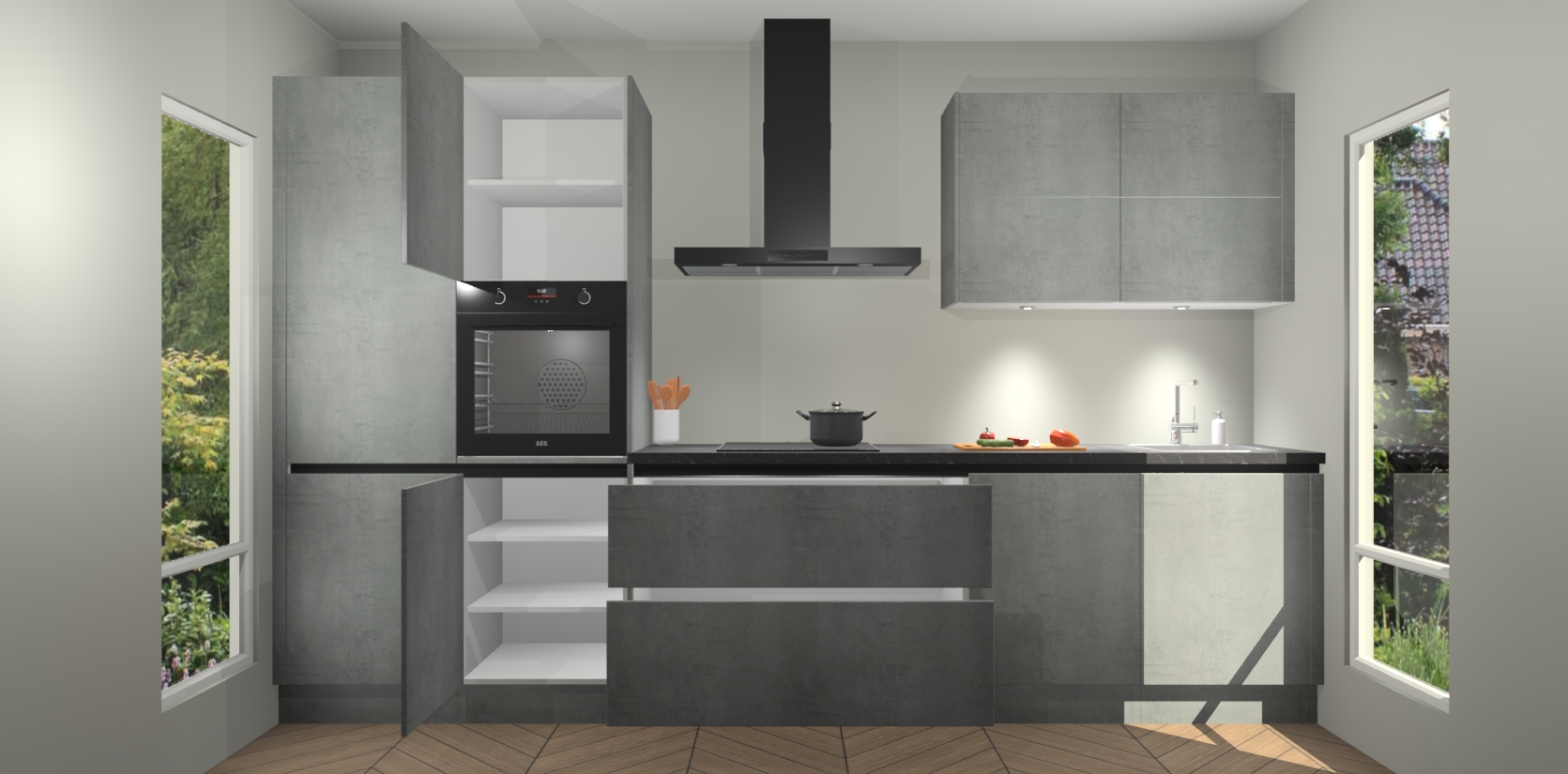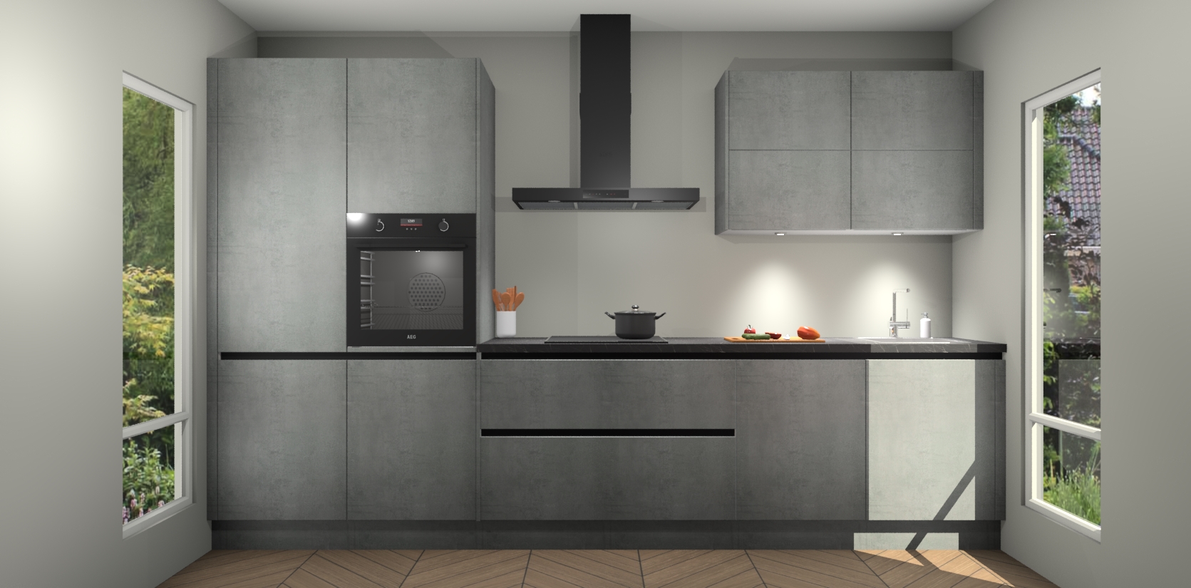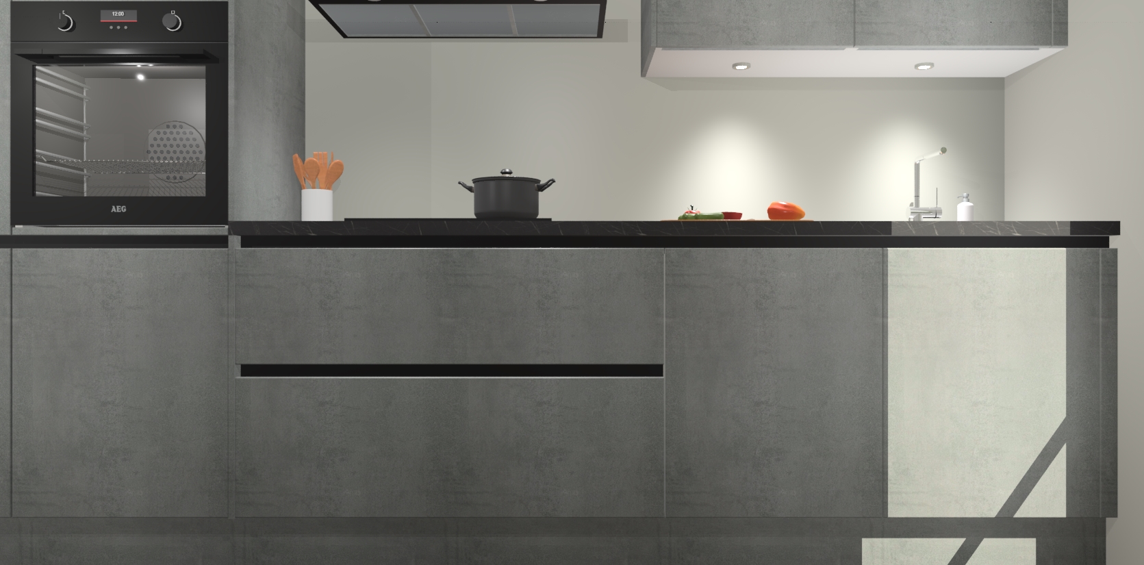 Maak kennis met de nieuwe beton parelgrijze Keuken Parijs - de perfecte designcombinatie van gemak, moderne elegantie en ultramodern design. Met een gemakkelijk te reinigen beton parelgrijze afwerking, zal de slankheid van deze keuken zeker een vleugje luxe toevoegen aan elke ruimte die hij inneemt.