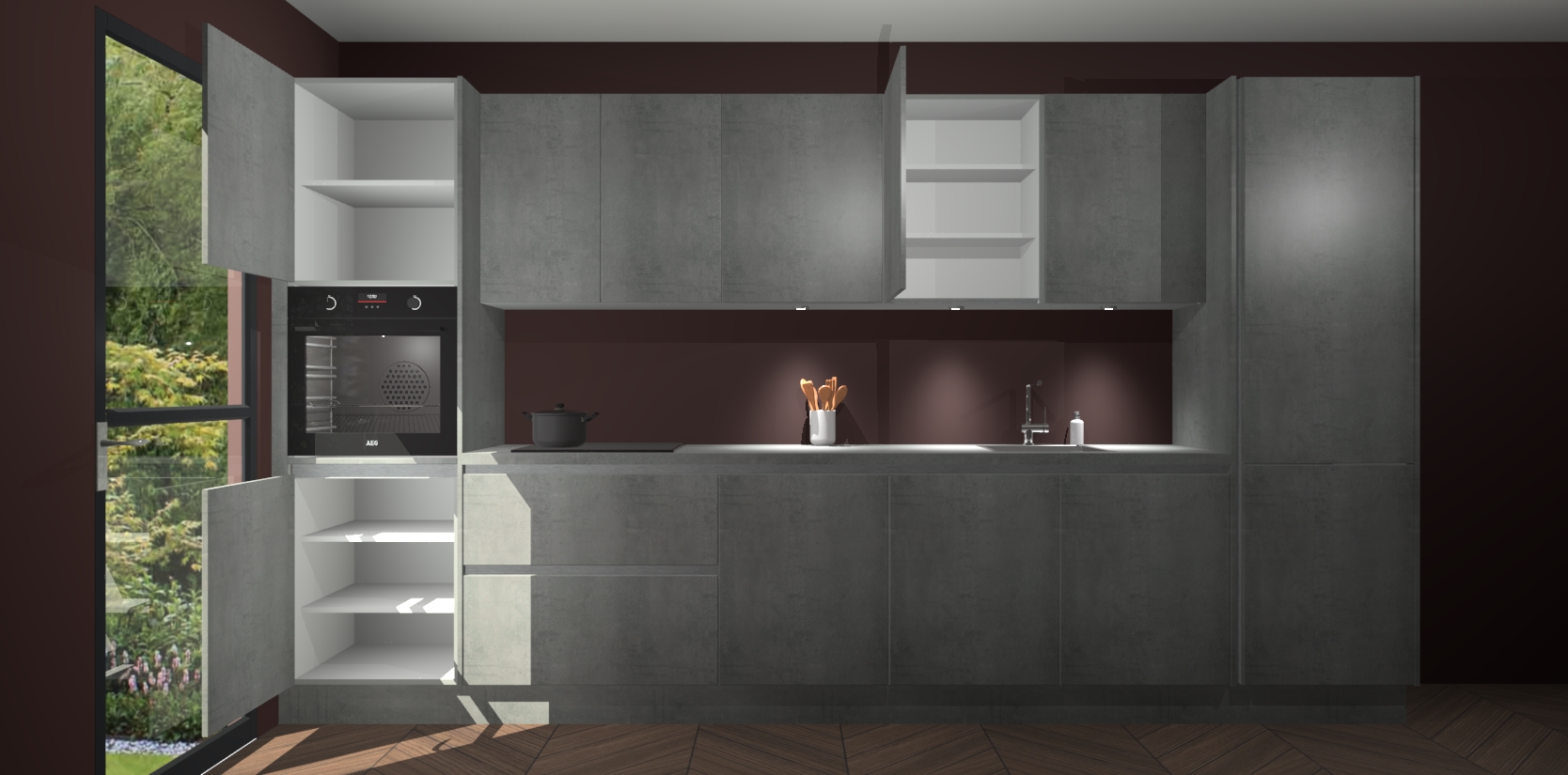 Dit is de perfecte keuken voor wie op zoek is naar een luxueuze stijl zonder zijn portemonnee te legen! Het chique ontwerp van de beton parelgrijze greeploze keuken Wels voegt dat vleugje verfijning toe aan elk huis. Het gemak van voorgemonteerde kasten bespaart u talloze uren tijd en energie, zodat u veel sneller dan verwacht kunt beginnen te genieten van uw prachtige nieuwe keuken. Bovendien bedraagt de levertijd slechts 7 weken.