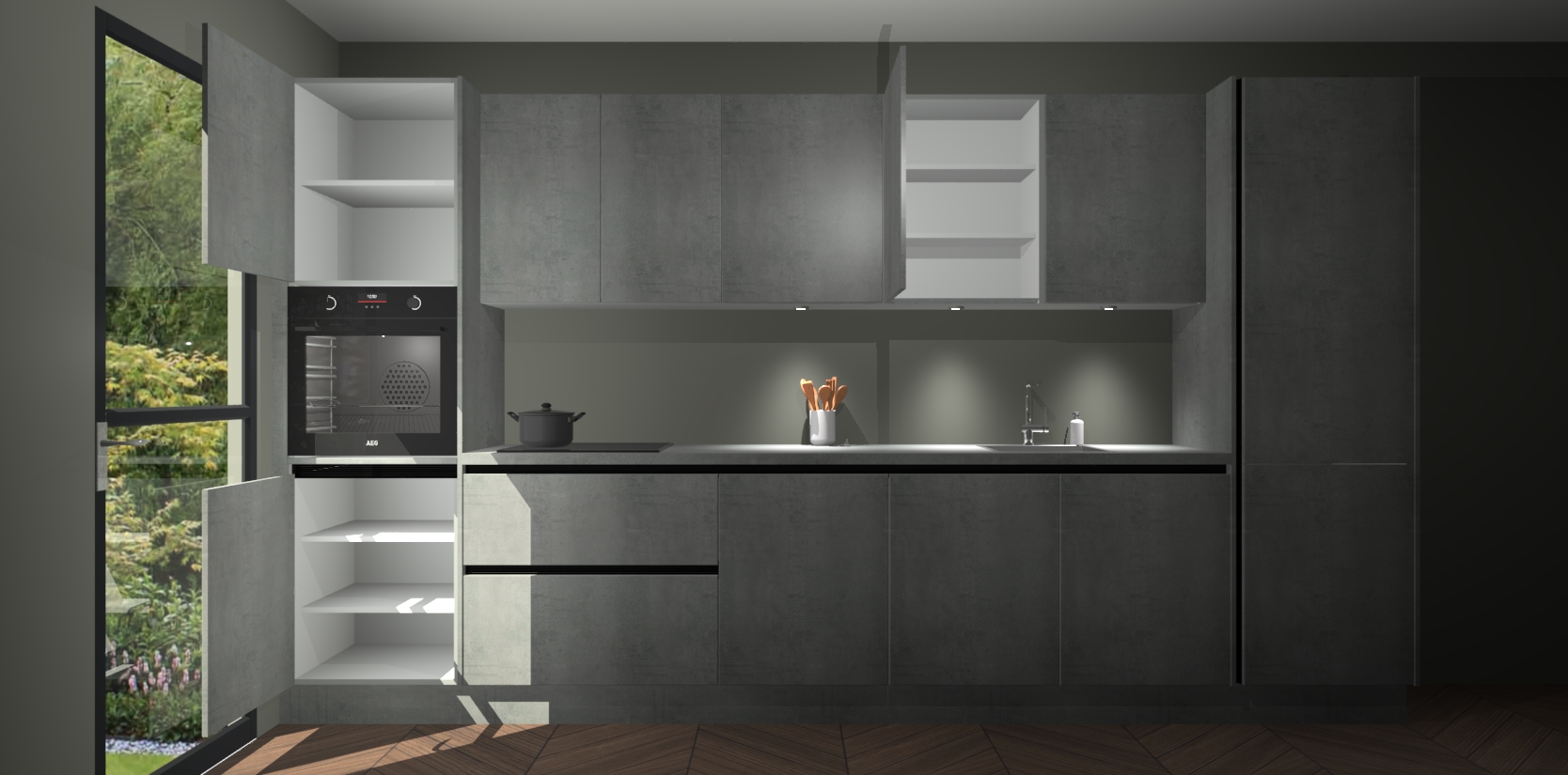Dit is de perfecte keuken voor wie op zoek is naar een luxueuze stijl zonder zijn portemonnee te legen! Het chique ontwerp van de beton parelgrijze greeploze keuken Wels voegt dat vleugje verfijning toe aan elk huis. Het gemak van voorgemonteerde kasten bespaart u talloze uren tijd en energie, zodat u veel sneller dan verwacht kunt beginnen te genieten van uw prachtige nieuwe keuken. Bovendien bedraagt de levertijd slechts 7 weken.