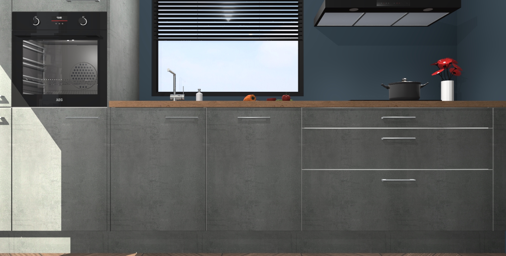 Inclusief plinten, stelpoten en werkblad