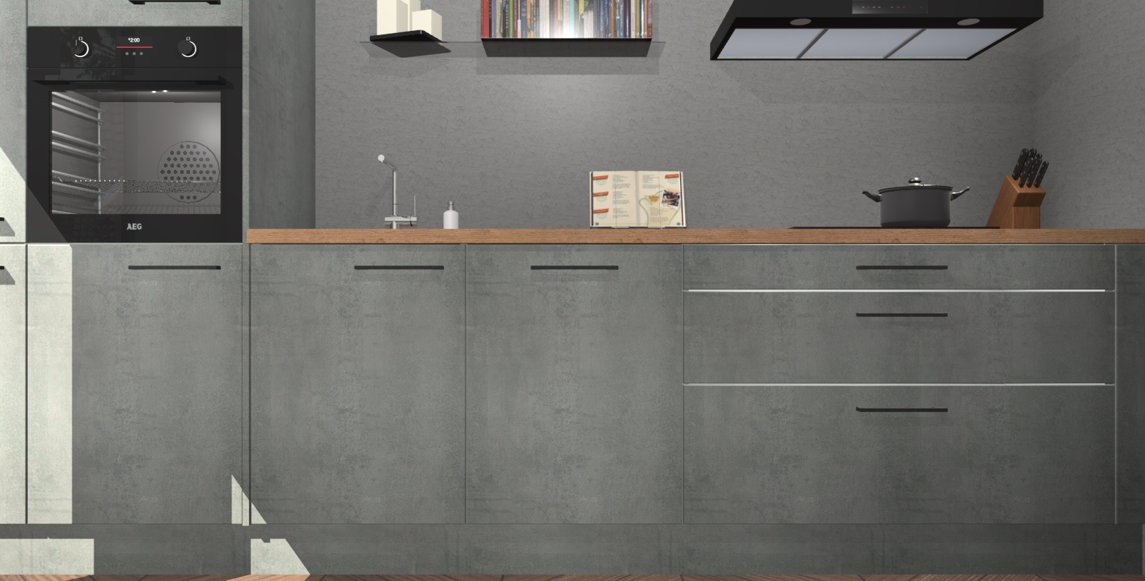 Inclusief plinten, stelpoten en werkblad