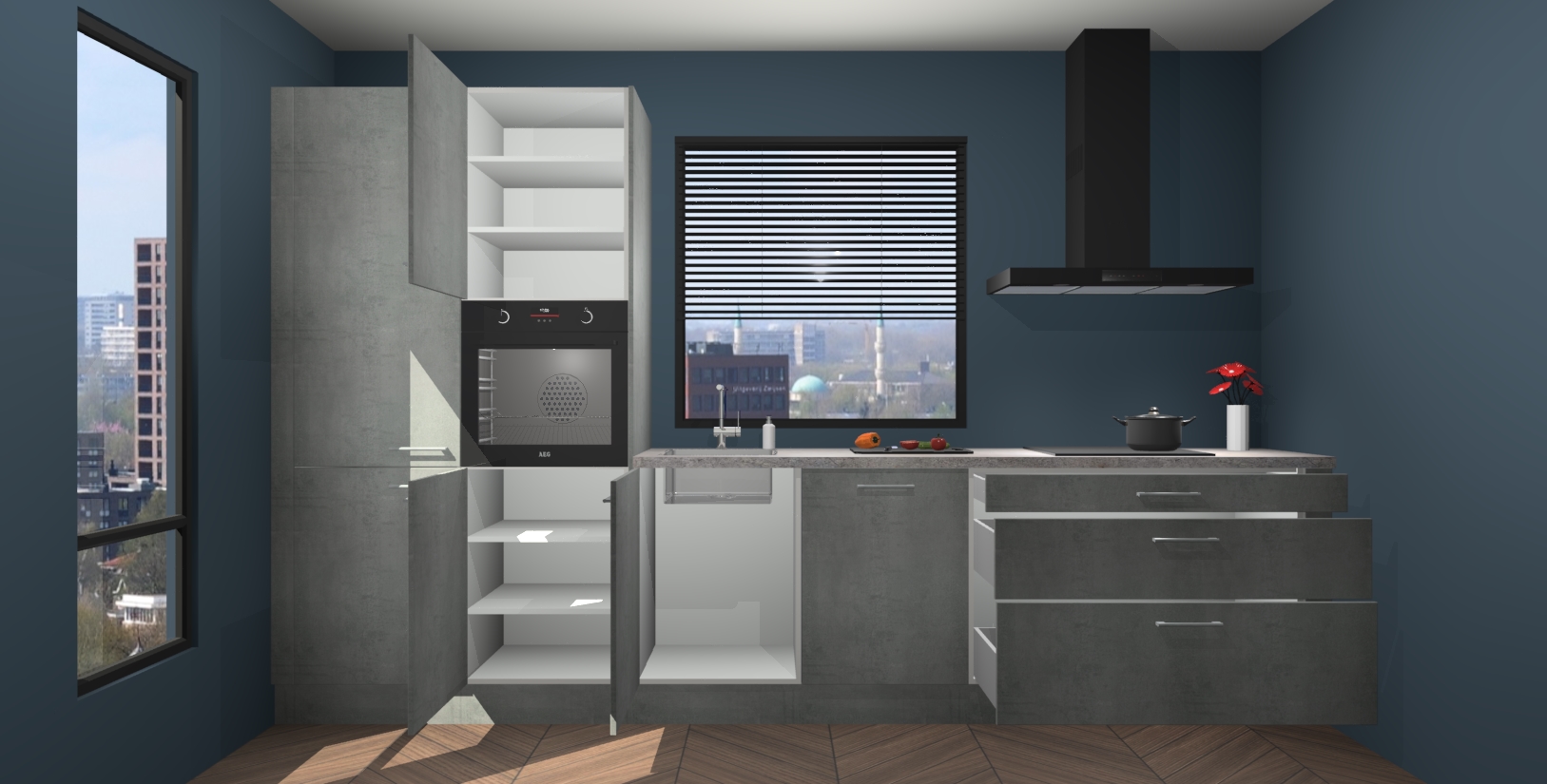 Inclusief plinten, stelpoten en werkblad