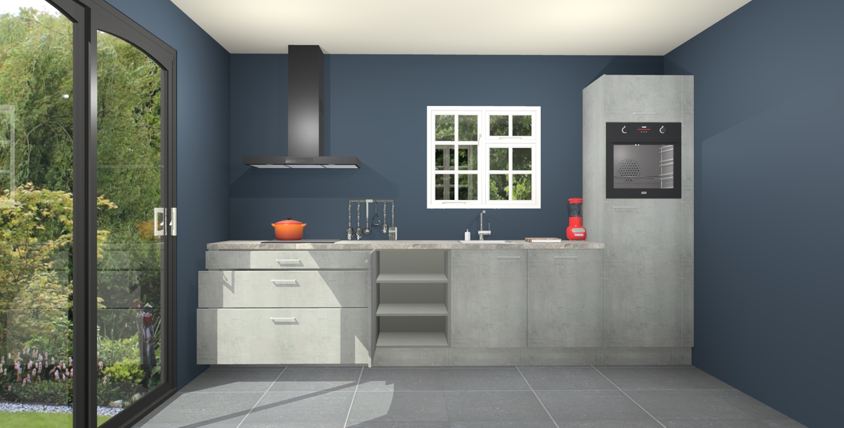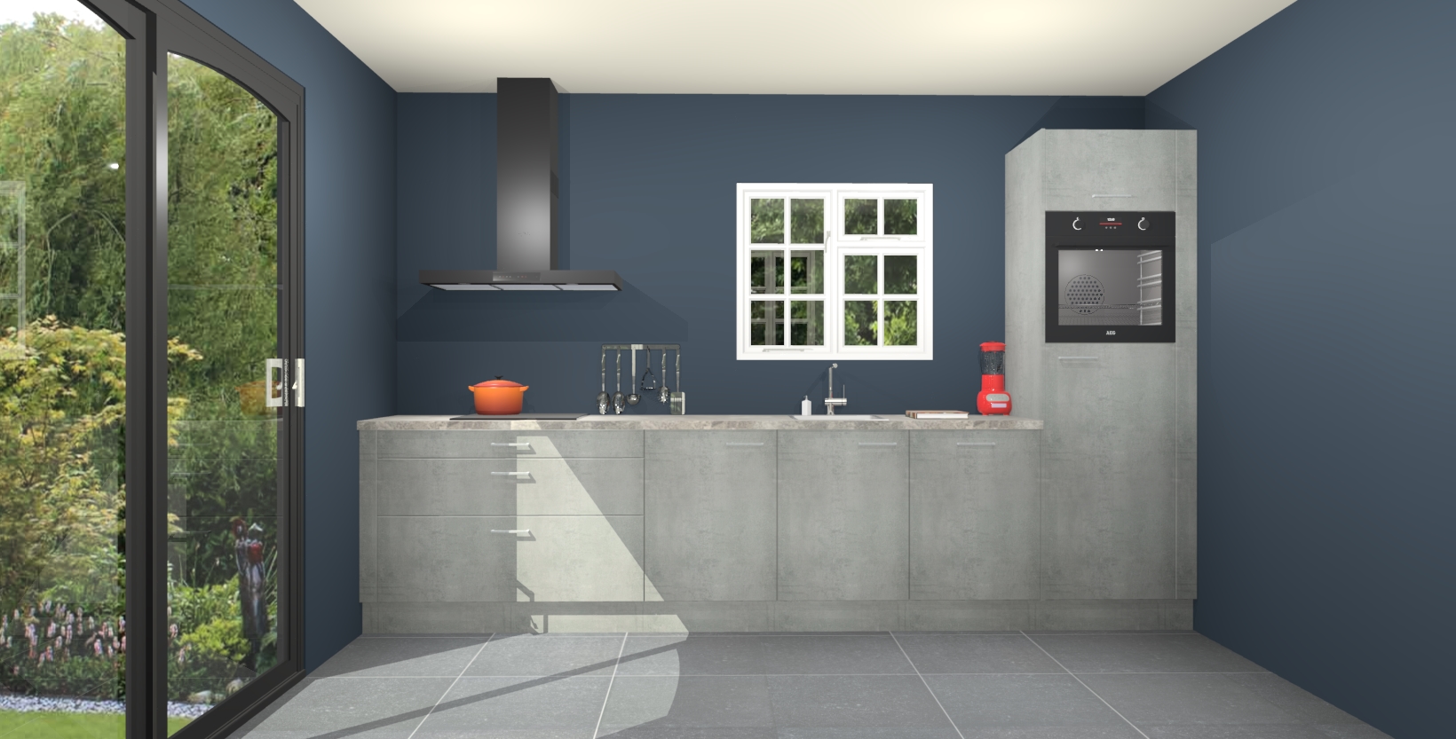 Maak kennis met de beton parelgrijze keuken Sofia: de perfecte mix van stijl en gemak. De keuken heeft vijf inbouw apparaten, plus een werkblad in houtlook dat meteen warmte en verfijning toevoegt.