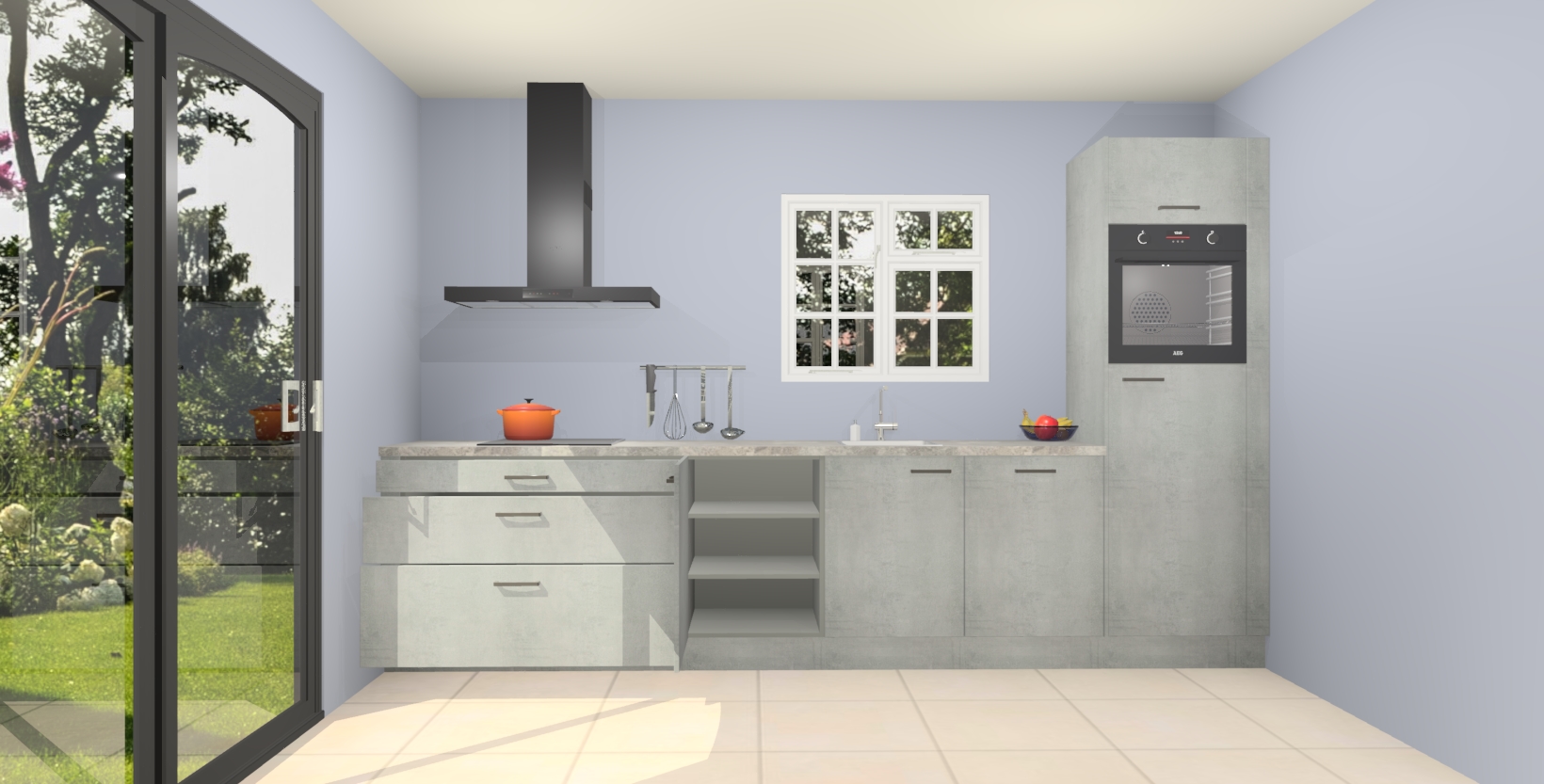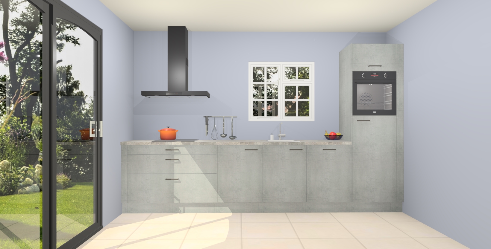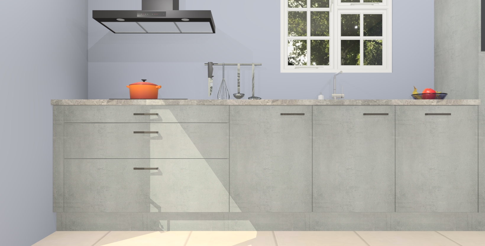 Maak kennis met de beton parelgrijze keuken Sofia: de perfecte mix van stijl en gemak. De keuken heeft vijf inbouw apparaten, plus een werkblad in houtlook dat meteen warmte en verfijning toevoegt.