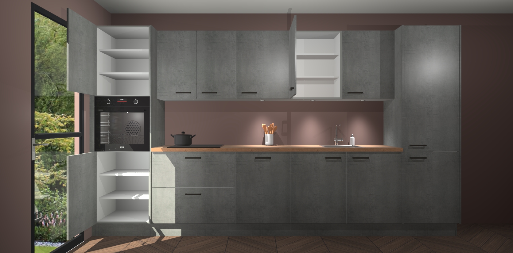 Dit is de perfecte keuken voor wie op zoek is naar een luxueuze stijl zonder zijn portemonnee te legen! Het chique ontwerp van de beton parelgrijze keuken Wels voegt dat vleugje verfijning toe aan elk huis. Het gemak van voorgemonteerde kasten bespaart u talloze uren tijd en energie, zodat u veel sneller dan verwacht kunt beginnen te genieten van uw prachtige nieuwe keuken. Bovendien bedraagt de levertijd slechts 7 weken.