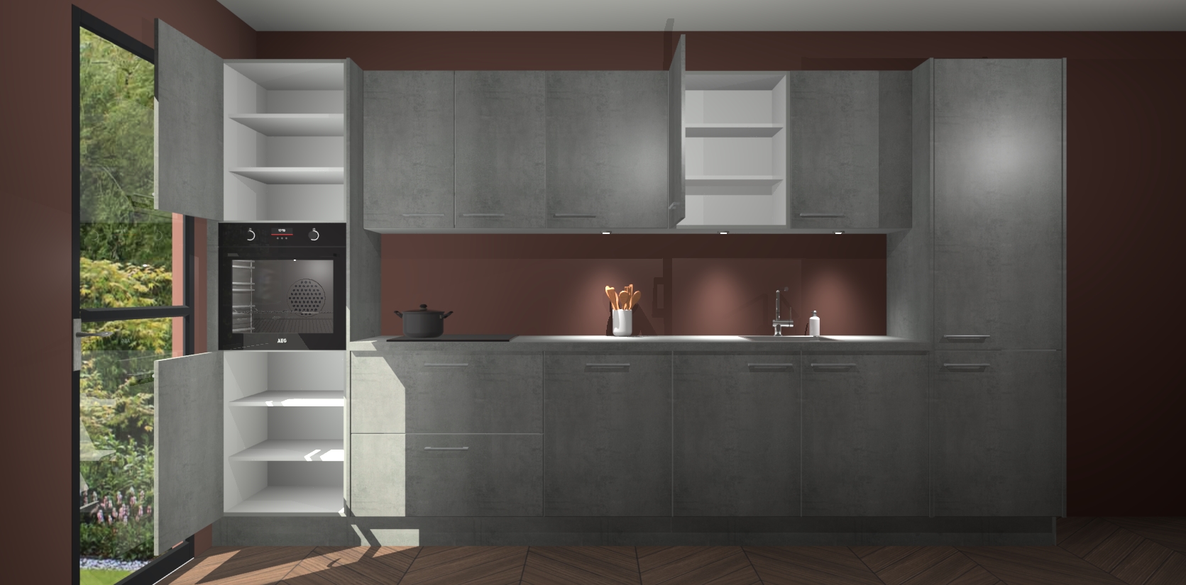 Dit is de perfecte keuken voor wie op zoek is naar een luxueuze stijl zonder zijn portemonnee te legen! Het chique ontwerp van de beton parelgrijze keuken Wels voegt dat vleugje verfijning toe aan elk huis. Het gemak van voorgemonteerde kasten bespaart u talloze uren tijd en energie, zodat u veel sneller dan verwacht kunt beginnen te genieten van uw prachtige nieuwe keuken. Bovendien bedraagt de levertijd slechts 7 weken.