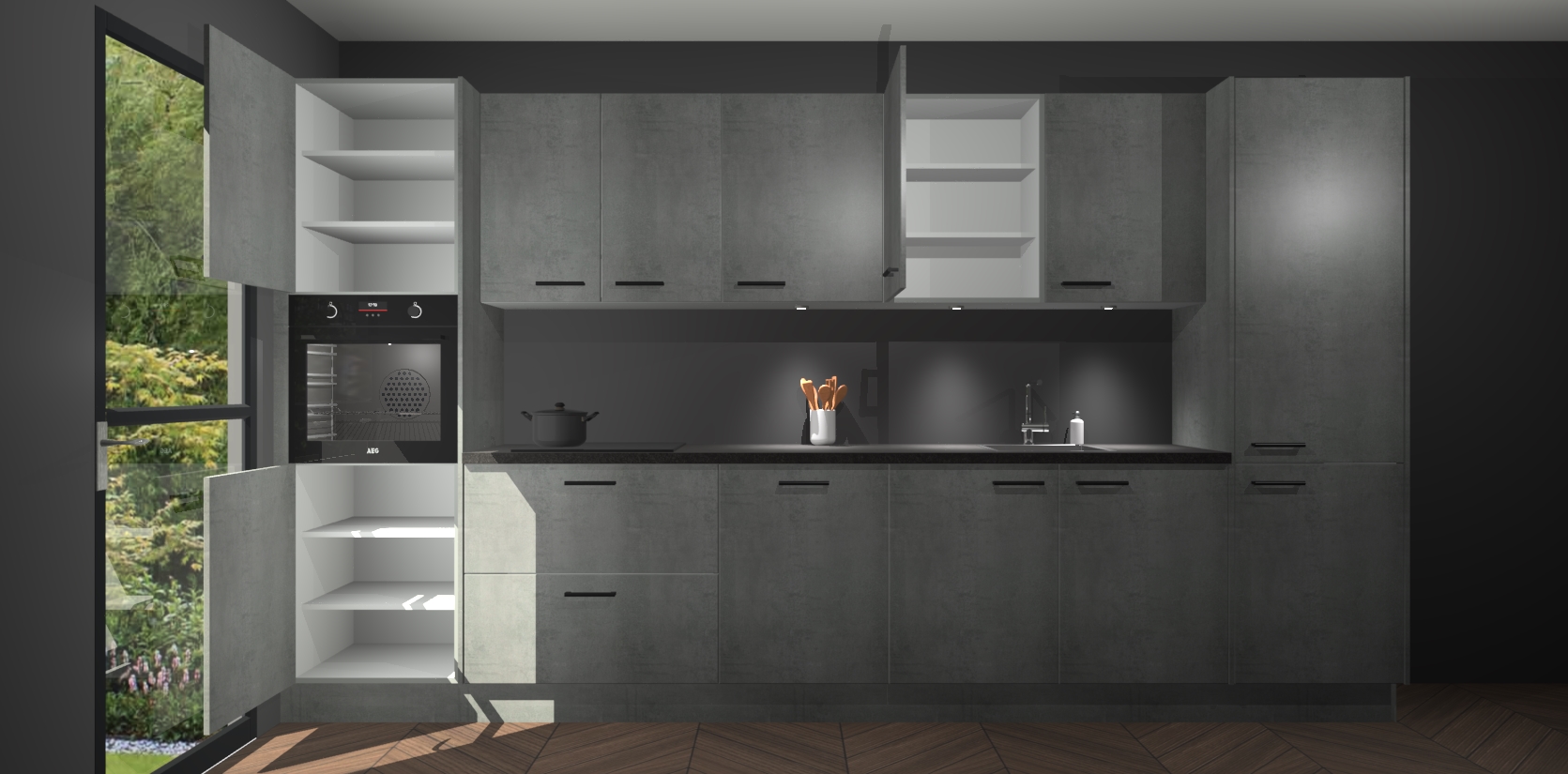 Dit is de perfecte keuken voor wie op zoek is naar een luxueuze stijl zonder zijn portemonnee te legen! Het chique ontwerp van de beton parelgrijze keuken Wels voegt dat vleugje verfijning toe aan elk huis. Het gemak van voorgemonteerde kasten bespaart u talloze uren tijd en energie, zodat u veel sneller dan verwacht kunt beginnen te genieten van uw prachtige nieuwe keuken. Bovendien bedraagt de levertijd slechts 7 weken.