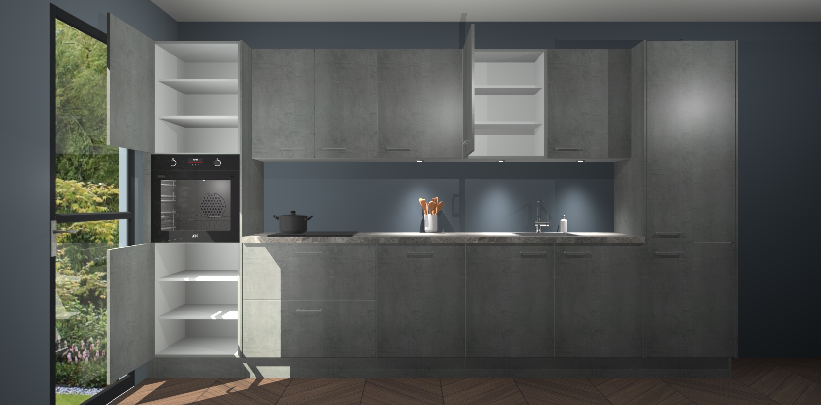 Dit is de perfecte keuken voor wie op zoek is naar een luxueuze stijl zonder zijn portemonnee te legen! Het chique ontwerp van de beton parelgrijze keuken Wels voegt dat vleugje verfijning toe aan elk huis. Het gemak van voorgemonteerde kasten bespaart u talloze uren tijd en energie, zodat u veel sneller dan verwacht kunt beginnen te genieten van uw prachtige nieuwe keuken. Bovendien bedraagt de levertijd slechts 7 weken.