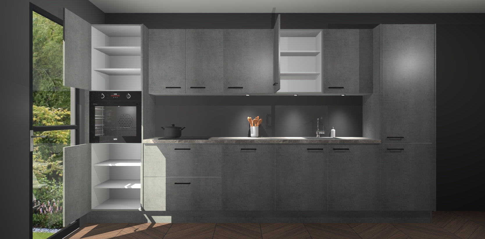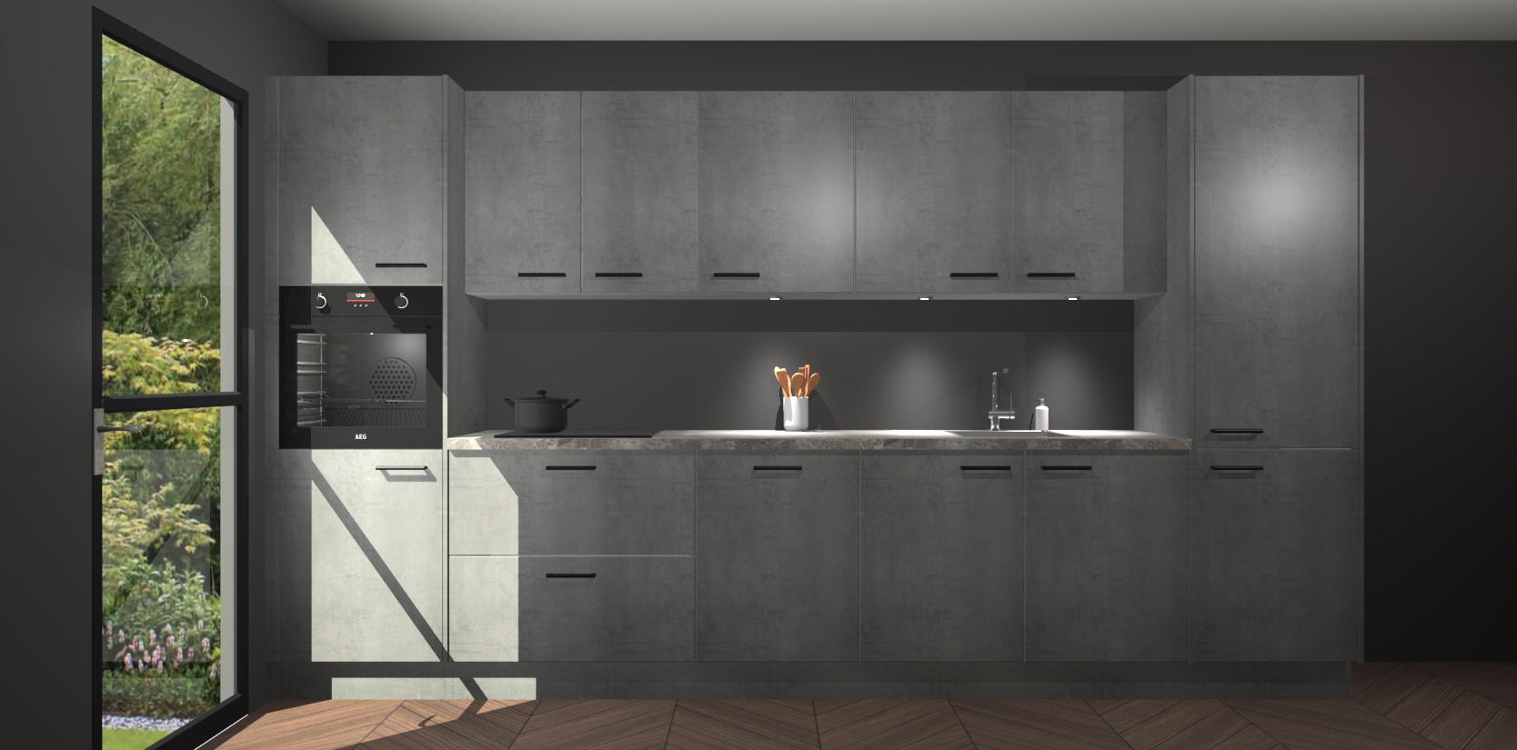 Dit is de perfecte keuken voor wie op zoek is naar een luxueuze stijl zonder zijn portemonnee te legen! Het chique ontwerp van de beton parelgrijze keuken Wels voegt dat vleugje verfijning toe aan elk huis. Het gemak van voorgemonteerde kasten bespaart u talloze uren tijd en energie, zodat u veel sneller dan verwacht kunt beginnen te genieten van uw prachtige nieuwe keuken. Bovendien bedraagt de levertijd slechts 7 weken.