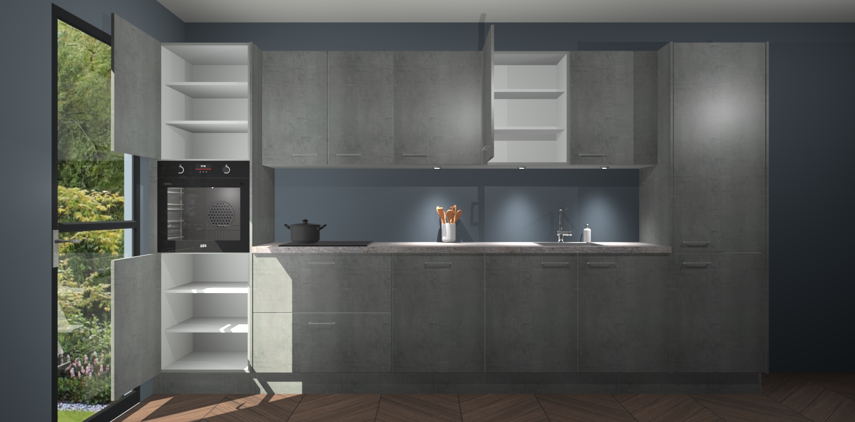 Dit is de perfecte keuken voor wie op zoek is naar een luxueuze stijl zonder zijn portemonnee te legen! Het chique ontwerp van de beton parelgrijze keuken Wels voegt dat vleugje verfijning toe aan elk huis. Het gemak van voorgemonteerde kasten bespaart u talloze uren tijd en energie, zodat u veel sneller dan verwacht kunt beginnen te genieten van uw prachtige nieuwe keuken. Bovendien bedraagt de levertijd slechts 7 weken.