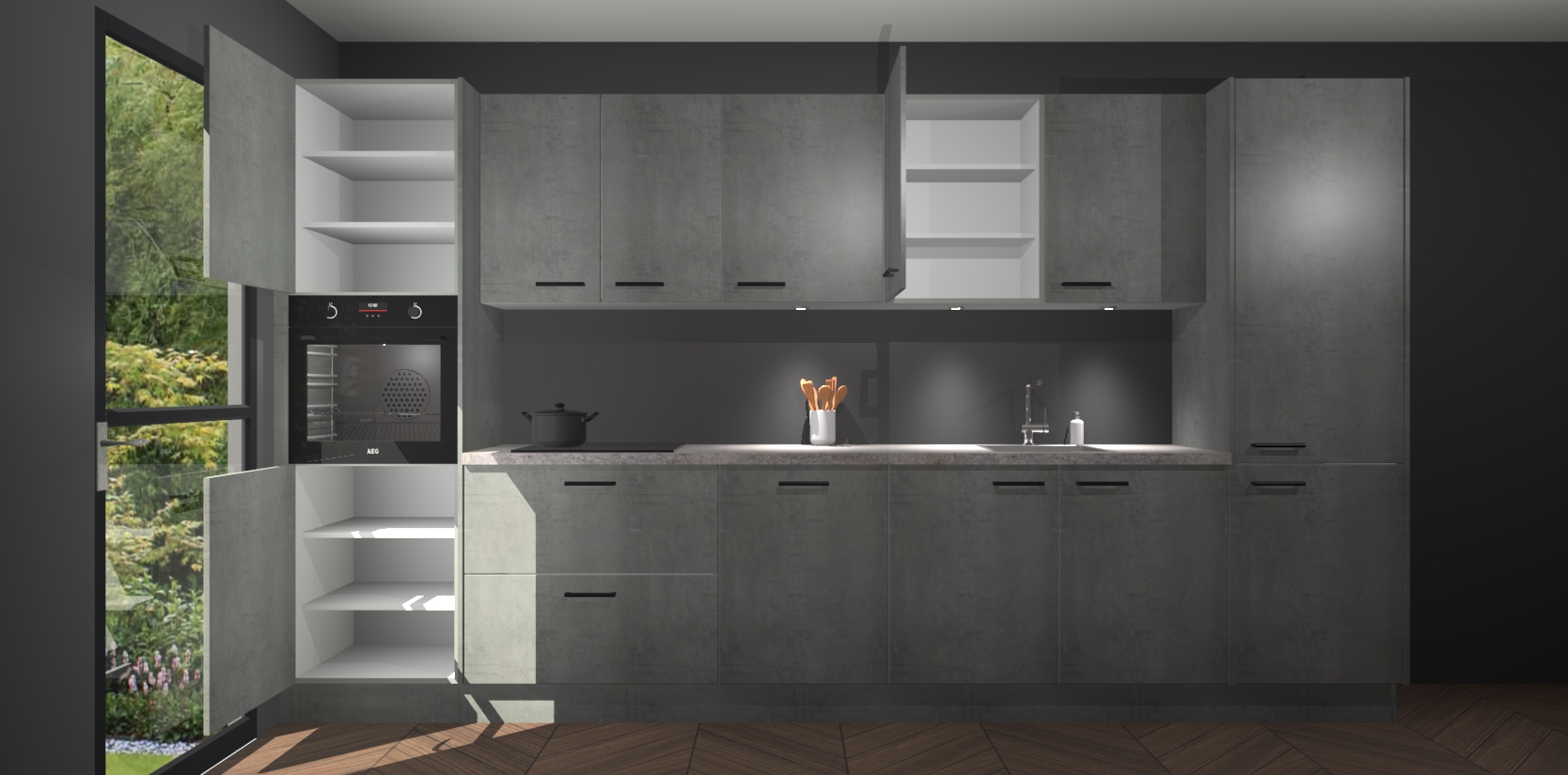 Dit is de perfecte keuken voor wie op zoek is naar een luxueuze stijl zonder zijn portemonnee te legen! Het chique ontwerp van de beton parelgrijze keuken Wels voegt dat vleugje verfijning toe aan elk huis. Het gemak van voorgemonteerde kasten bespaart u talloze uren tijd en energie, zodat u veel sneller dan verwacht kunt beginnen te genieten van uw prachtige nieuwe keuken. Bovendien bedraagt de levertijd slechts 7 weken.