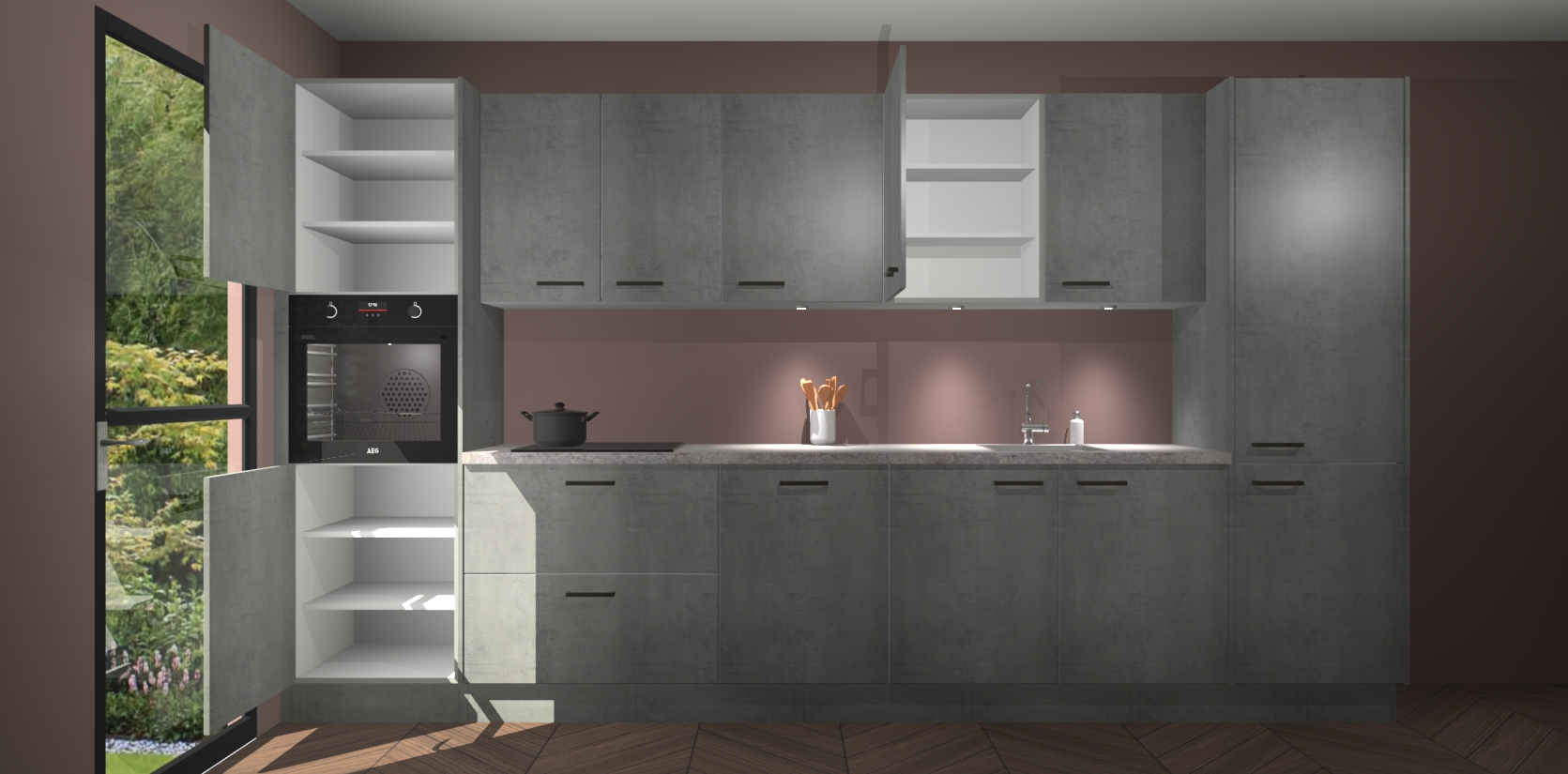 Dit is de perfecte keuken voor wie op zoek is naar een luxueuze stijl zonder zijn portemonnee te legen! Het chique ontwerp van de beton parelgrijze keuken Wels voegt dat vleugje verfijning toe aan elk huis. Het gemak van voorgemonteerde kasten bespaart u talloze uren tijd en energie, zodat u veel sneller dan verwacht kunt beginnen te genieten van uw prachtige nieuwe keuken. Bovendien bedraagt de levertijd slechts 7 weken.
