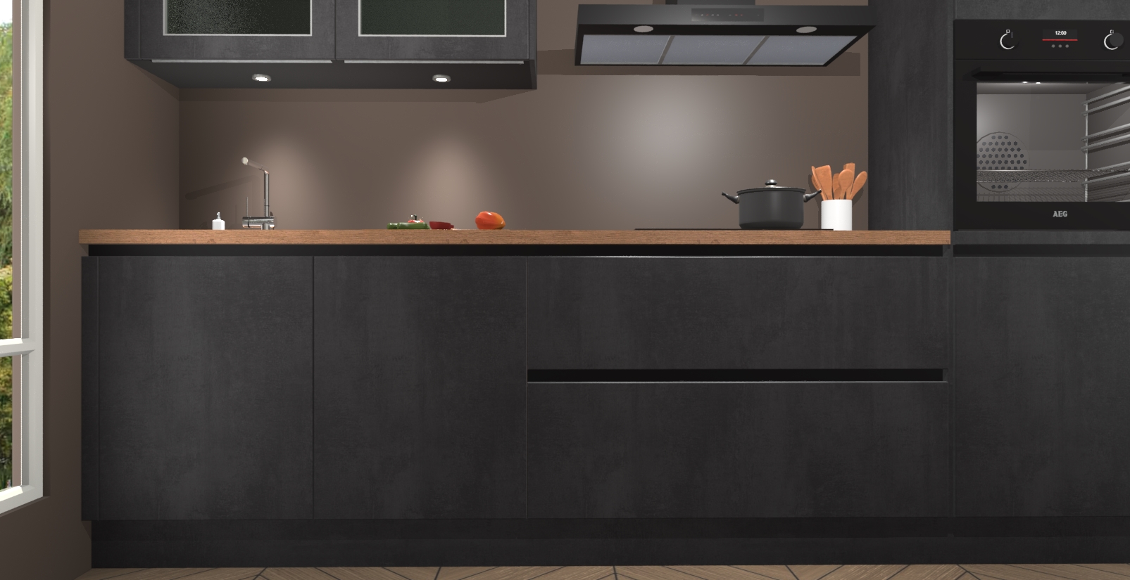 Inclusief plinten, stelpoten en werkblad