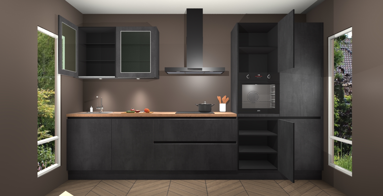 In deze box zijn alle kleuren verzameld van de deuren en werkbladen. Vraag de gratis kleurenbox aan en kijk thuis rustig verder!