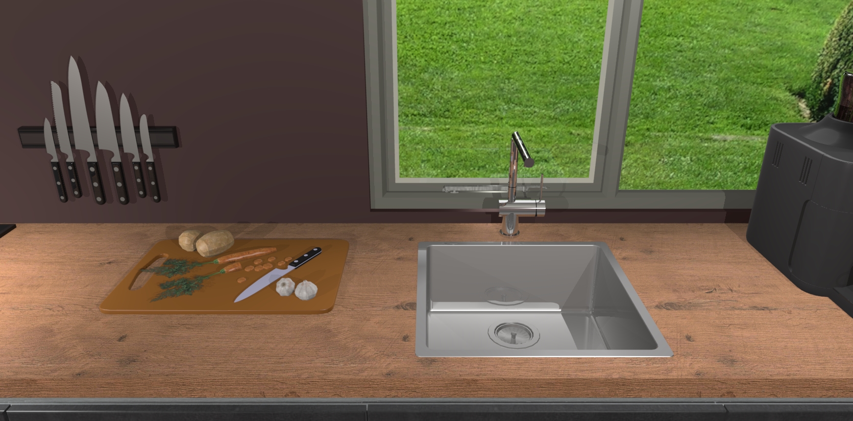 - De spoelbak is nog niet in gevreesd. Dit dient tijdens het werk gedaan te worden