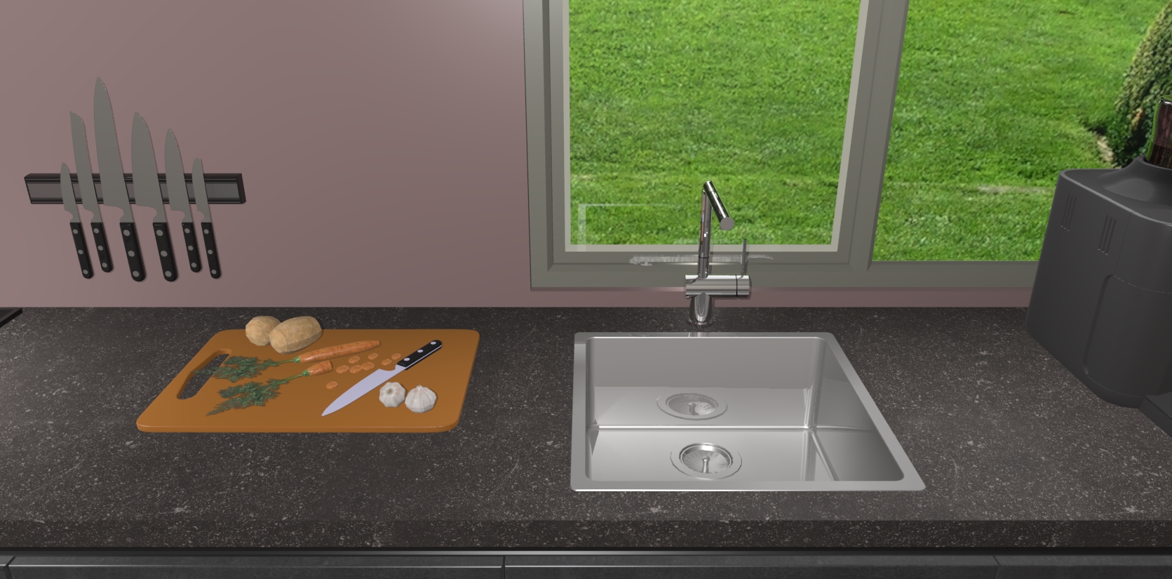 - De spoelbak is nog niet in gevreesd. Dit dient tijdens het werk gedaan te worden