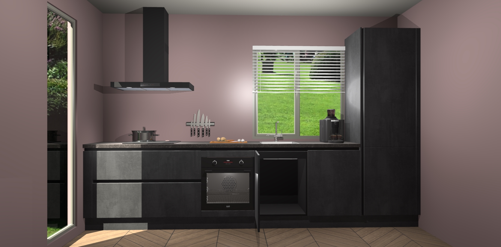 Maak kennis met de nieuwe Beton Zwarte greeploze keuken Antigua - een verbluffend, hoogwaardig keukenontwerp die uw ruimte gegarandeerd omtovert tot iets buitengewoons! Met zijn eigentijdse greeploze kastdeuren met luxueuze softclose systeem is de Beton Zwarte greeploze keuken Antigua de perfecte keuze voor iedereen die de look en feel van zijn leefruimte wil opwaarderen.