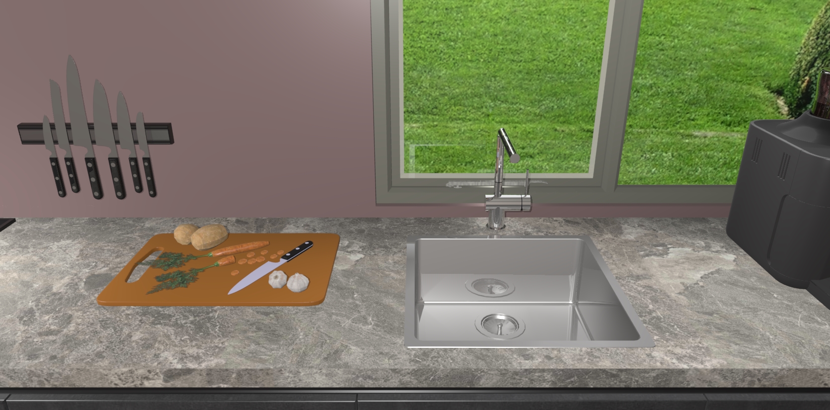 - De spoelbak is nog niet in gevreesd. Dit dient tijdens het werk gedaan te worden