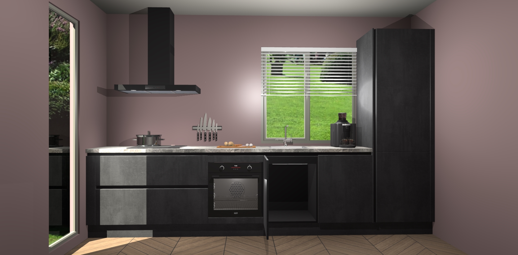 Maak kennis met de nieuwe Beton Zwarte greeploze keuken Antigua - een verbluffend, hoogwaardig keukenontwerp die uw ruimte gegarandeerd omtovert tot iets buitengewoons! Met zijn eigentijdse greeploze kastdeuren met luxueuze softclose systeem is de Beton Zwarte greeploze keuken Antigua de perfecte keuze voor iedereen die de look en feel van zijn leefruimte wil opwaarderen.