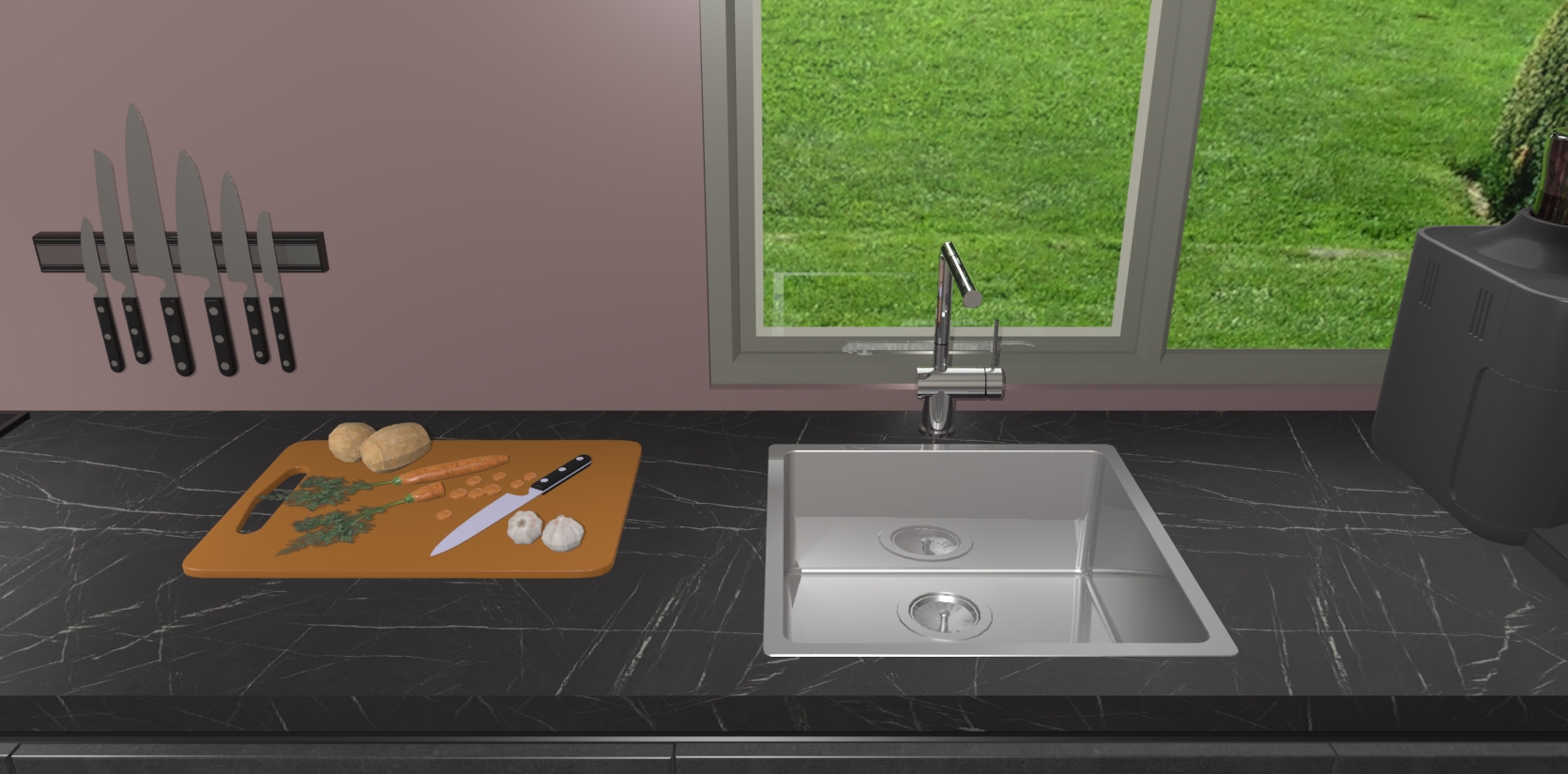 - De spoelbak is nog niet in gevreesd. Dit dient tijdens het werk gedaan te worden