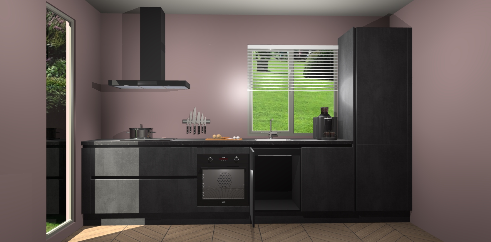 Maak kennis met de nieuwe Beton Zwarte greeploze keuken Antigua - een verbluffend, hoogwaardig keukenontwerp die uw ruimte gegarandeerd omtovert tot iets buitengewoons! Met zijn eigentijdse greeploze kastdeuren met luxueuze softclose systeem is de Beton Zwarte greeploze keuken Antigua de perfecte keuze voor iedereen die de look en feel van zijn leefruimte wil opwaarderen.