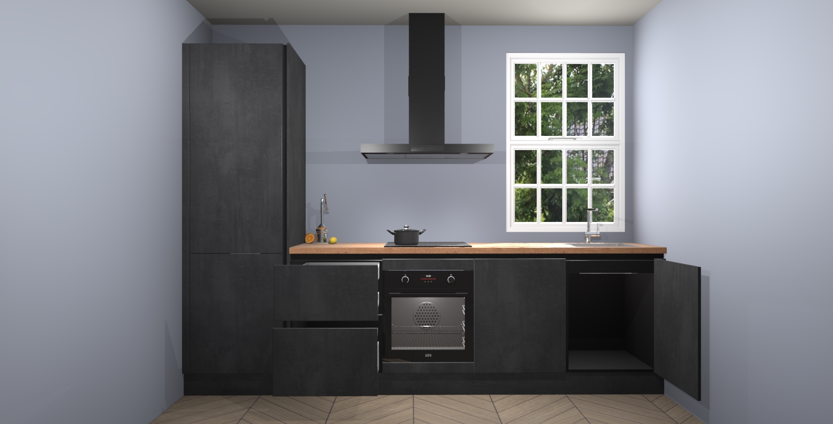 Inclusief plinten, stelpoten en werkblad