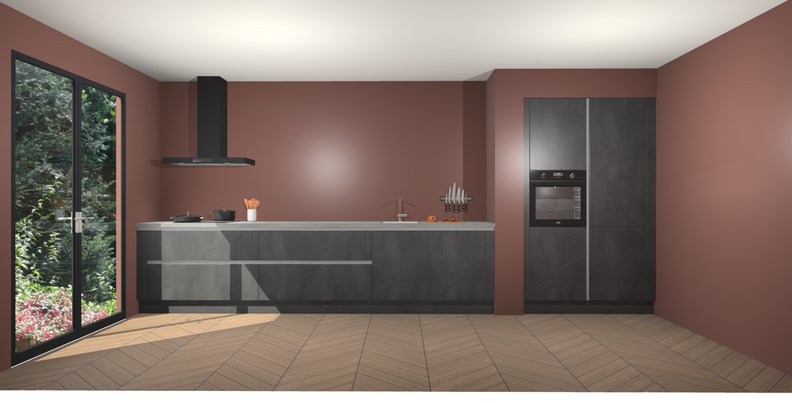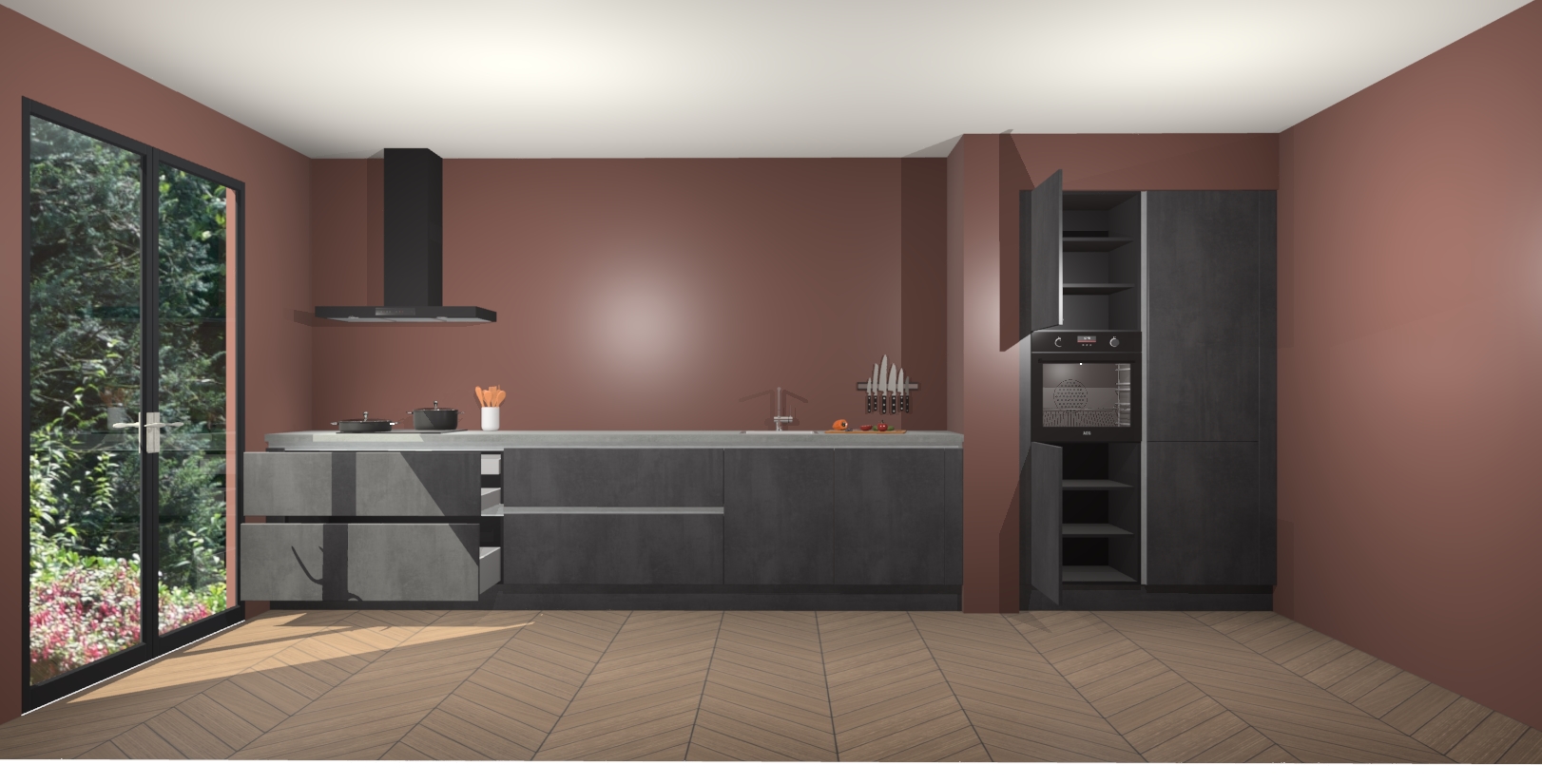 Maak kennis met de Beton Zwarte greeploze keuken Calgary - de perfecte aanvulling voor uw moderne keuken! Ervaar tijdloos design, elegantie en een chique uitstraling met onze handgrepen, soft-close deuren en veel opbergruimte. Dit alles wordt aangeboden tegen een vaste lage prijs voor ongeëvenaarde Duitse keukenkwaliteit!