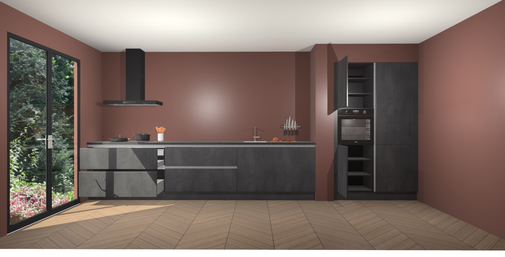 Maak kennis met de Beton Zwarte greeploze keuken Calgary - de perfecte aanvulling voor uw moderne keuken! Ervaar tijdloos design, elegantie en een chique uitstraling met onze handgrepen, soft-close deuren en veel opbergruimte. Dit alles wordt aangeboden tegen een vaste lage prijs voor ongeëvenaarde Duitse keukenkwaliteit!
