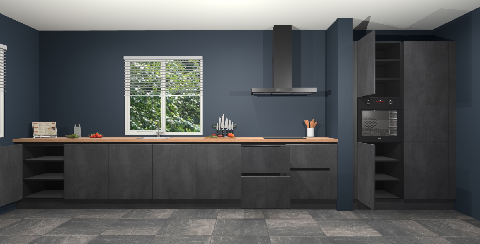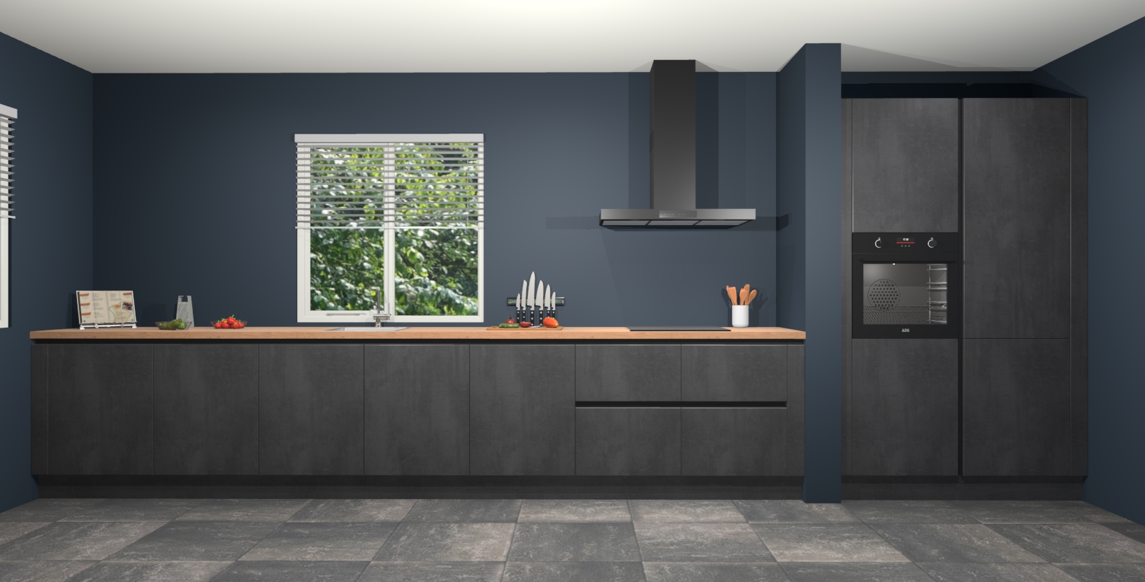 Maak kennis met de Beton zwarte keuken Elzas - de perfecte aanvulling voor uw moderne keuken! Ervaar tijdloos design, elegantie en een chique uitstraling met onze handgrepen, soft-close deuren en veel opbergruimte. Dit alles wordt aangeboden tegen een vaste lage prijs voor ongeëvenaarde Duitse keukenkwaliteit!