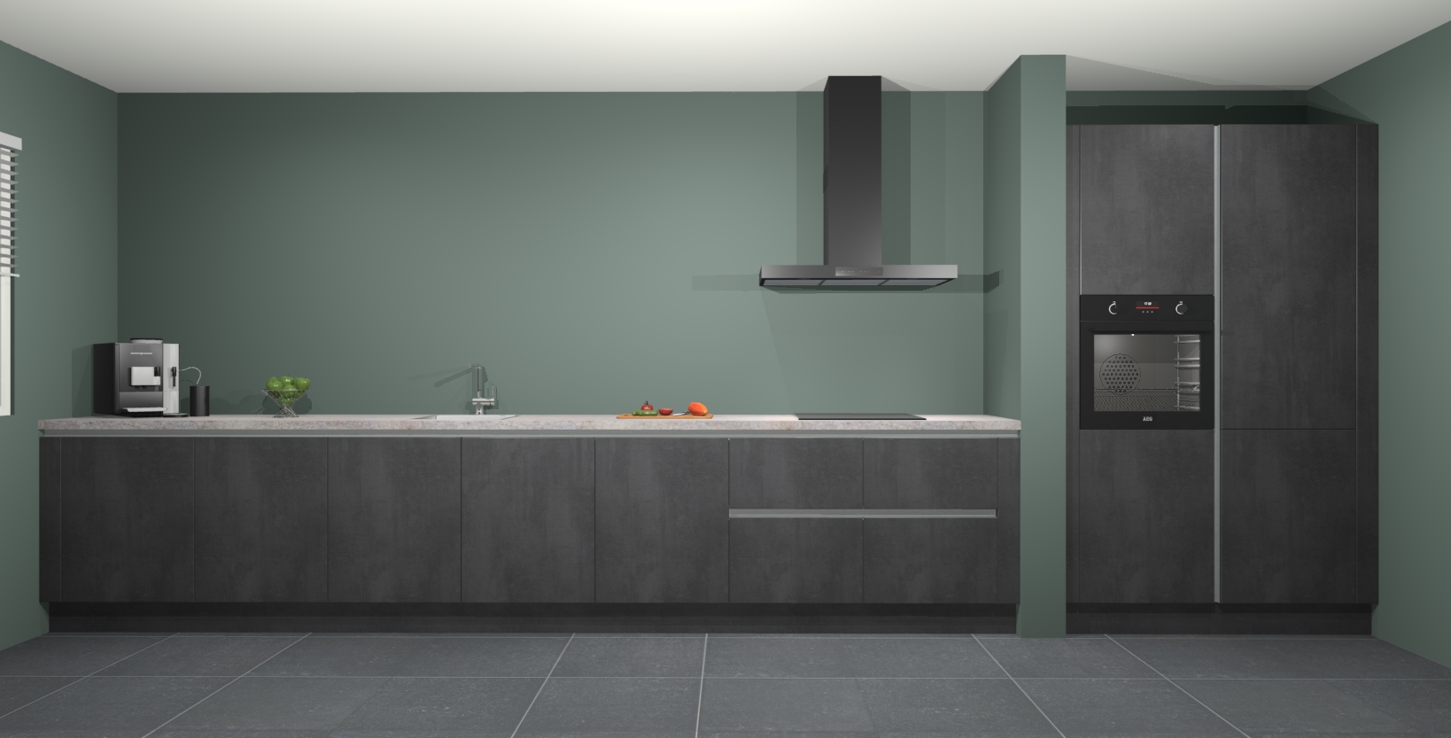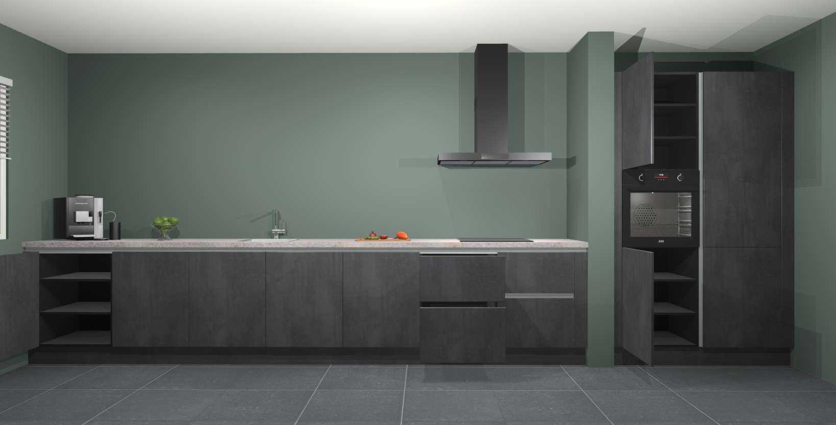 Maak kennis met de Beton zwarte keuken Elzas - de perfecte aanvulling voor uw moderne keuken! Ervaar tijdloos design, elegantie en een chique uitstraling met onze handgrepen, soft-close deuren en veel opbergruimte. Dit alles wordt aangeboden tegen een vaste lage prijs voor ongeëvenaarde Duitse keukenkwaliteit!