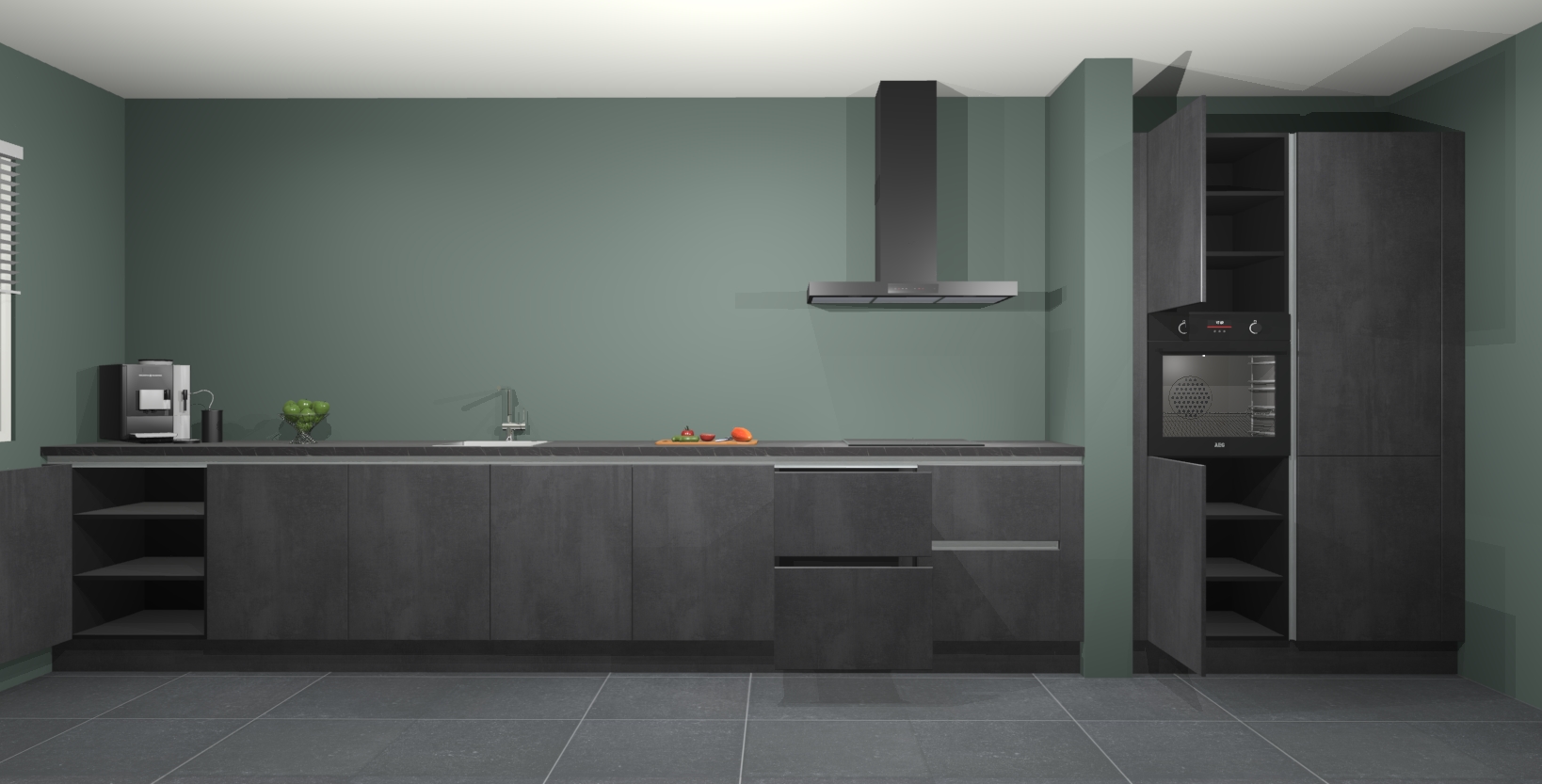 Maak kennis met de Beton zwarte keuken Elzas - de perfecte aanvulling voor uw moderne keuken! Ervaar tijdloos design, elegantie en een chique uitstraling met onze handgrepen, soft-close deuren en veel opbergruimte. Dit alles wordt aangeboden tegen een vaste lage prijs voor ongeëvenaarde Duitse keukenkwaliteit!