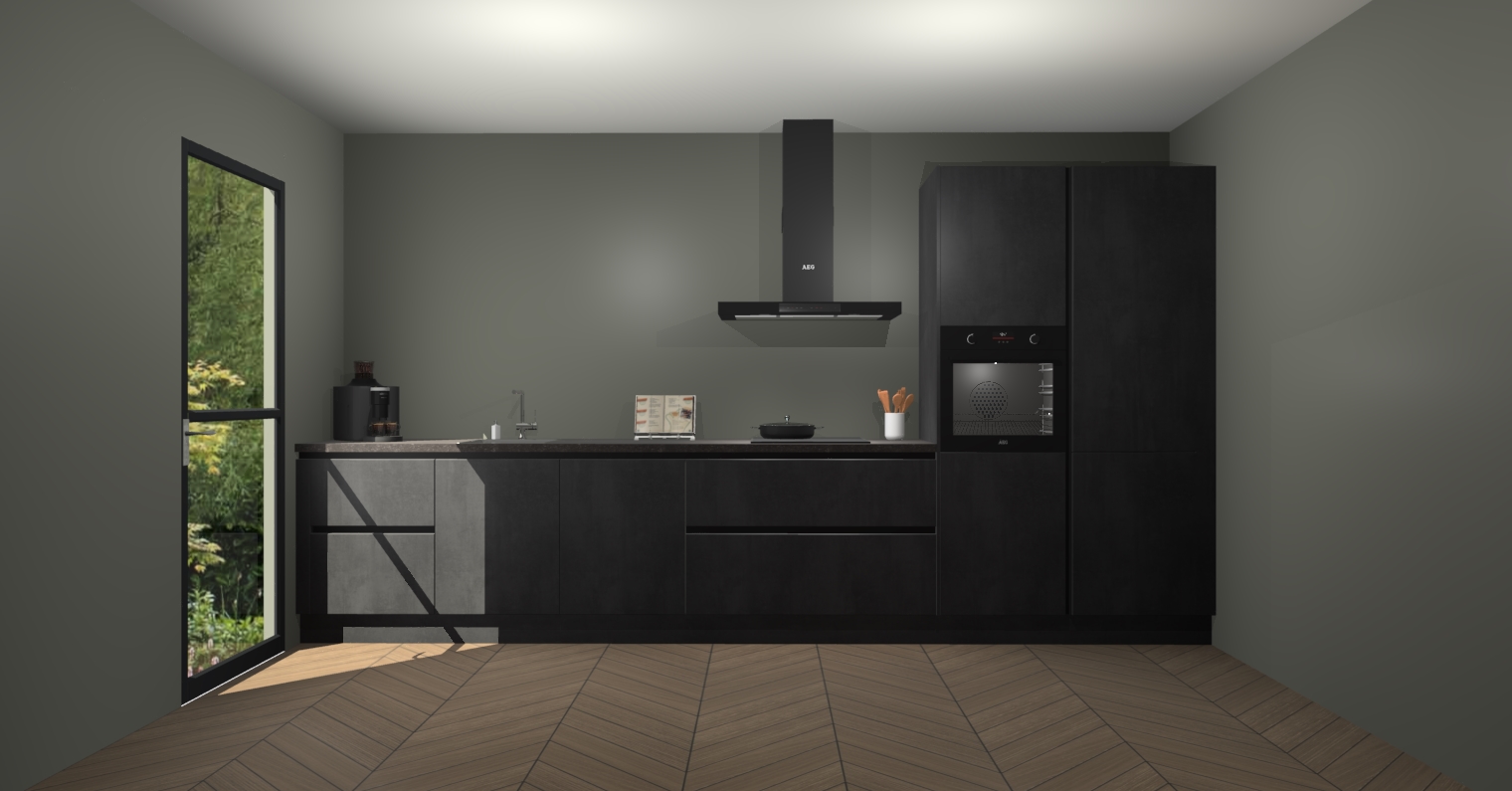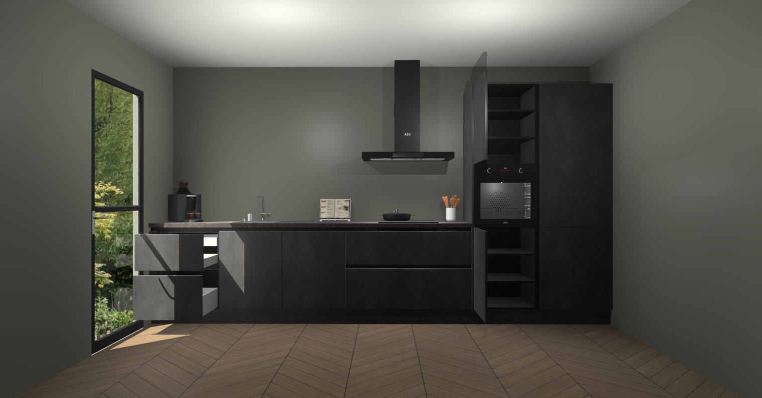De Beton Zwarte greeploze keuken Leuven is de perfecte mix van modern en tijdloos design. Met zijn prachtige glazen deuren op de bovenkastjes voegt hij echt iets speciaals en unieks toe aan elke keuken. En met vijf ingebouwde apparaten inbegrepen - een oven, inductiekookplaat, afzuigkap, vaatwasser en koelkast - kunt u deze keuken echt helemaal van uzelf maken! U kunt na bestelling ook upgraden naar AEG voor een nog hogere kwaliteitservaring.