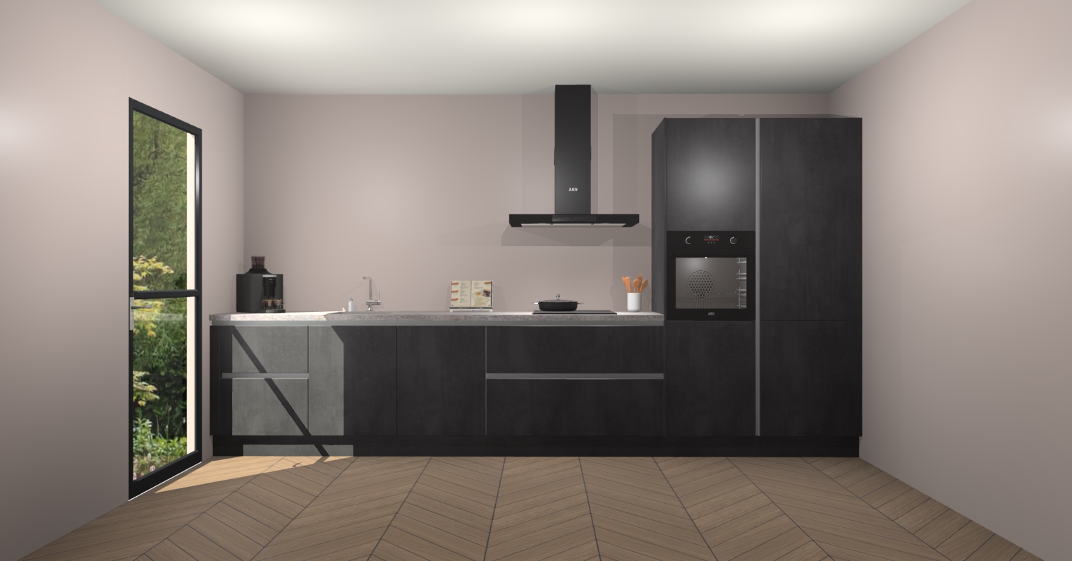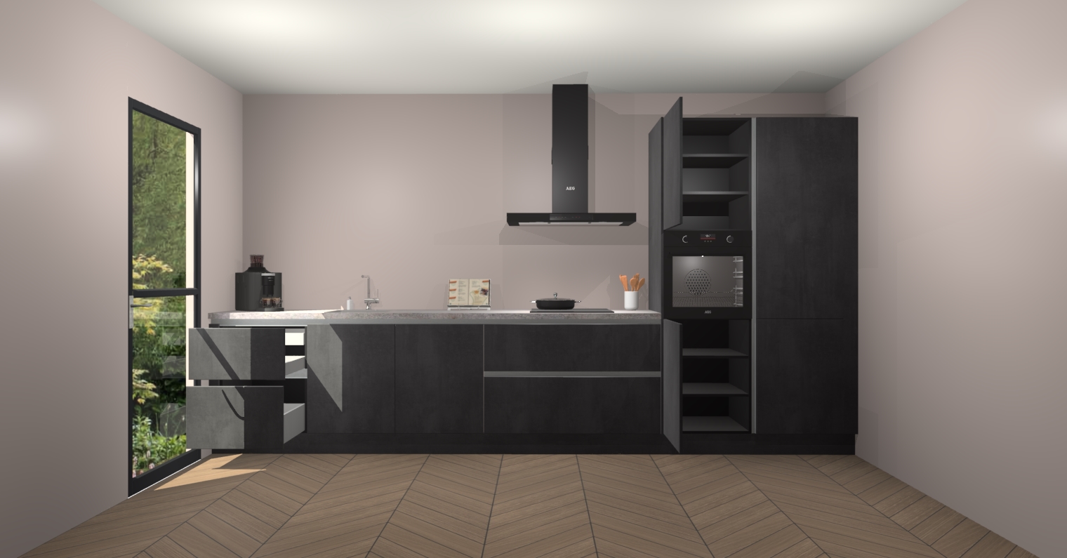 De Beton Zwarte greeploze keuken Leuven is de perfecte mix van modern en tijdloos design. Met zijn prachtige glazen deuren op de bovenkastjes voegt hij echt iets speciaals en unieks toe aan elke keuken. En met vijf ingebouwde apparaten inbegrepen - een oven, inductiekookplaat, afzuigkap, vaatwasser en koelkast - kunt u deze keuken echt helemaal van uzelf maken! U kunt na bestelling ook upgraden naar AEG voor een nog hogere kwaliteitservaring.