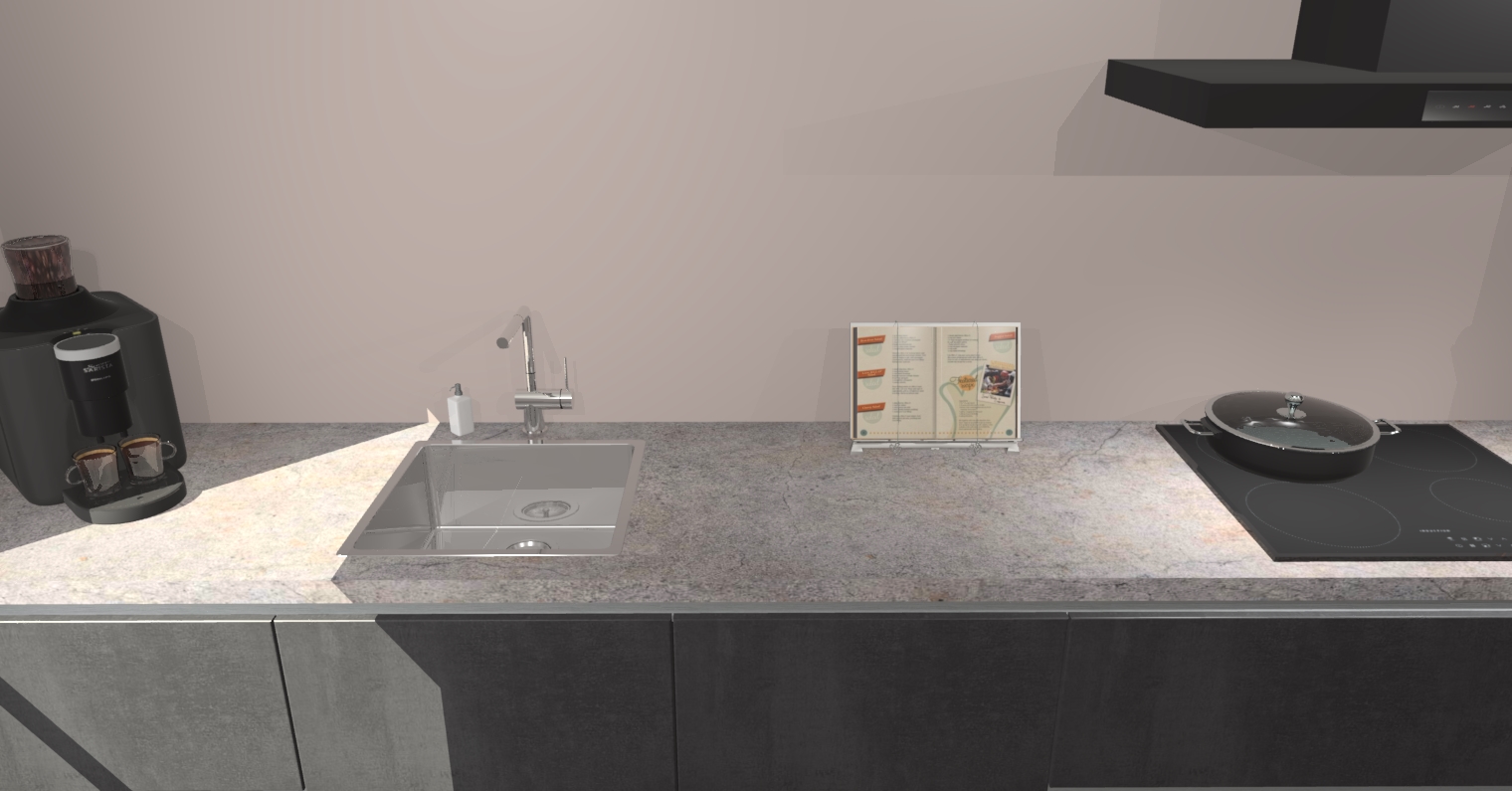 • De spoelbak is nog niet in gevreesd, dit dient tijdens het werk gedaan te worden