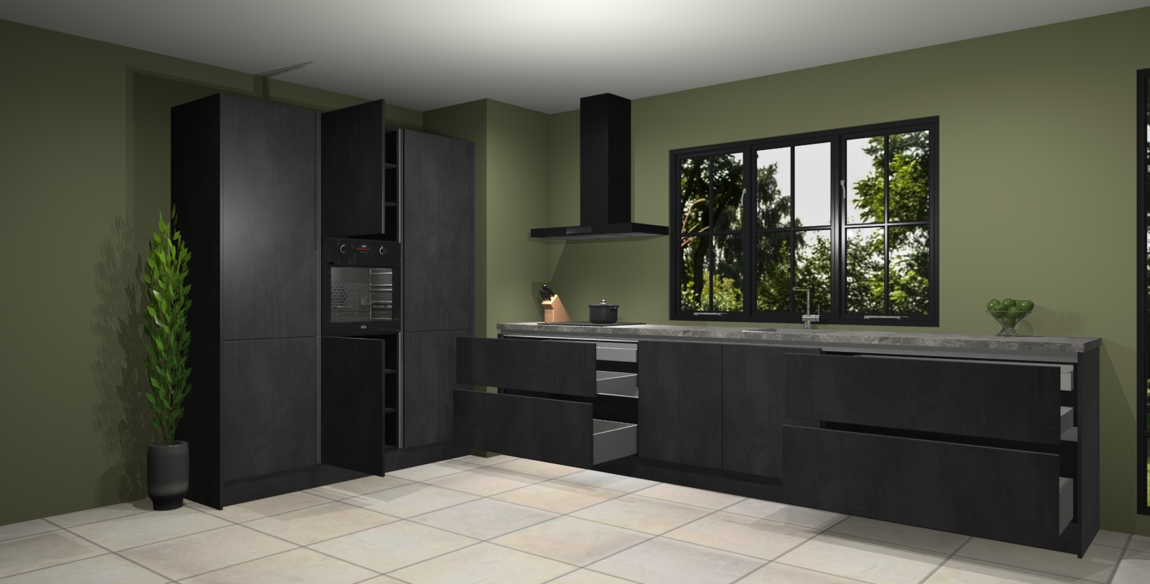 Maak van uw keuken een plek waar u trots op bent - trakteer uzelf vandaag nog op de kwaliteit en elegantie van de Beton zwarte keuken Marseille!