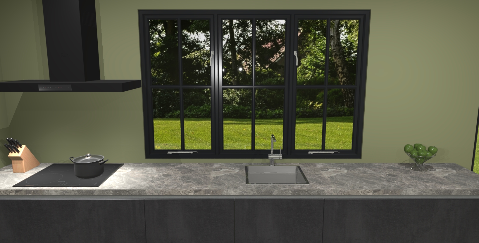De softclose deuren openen en sluiten is ook heel eenvoudig - geniet van een moeiteloze keukenervaring, zelfs als er kinderen rondlopen. Voor extra gemak bij het plaatsen van uw bestelling bieden we ook een upgrade naar een kookplaat met geïntegreerde afzuiging.