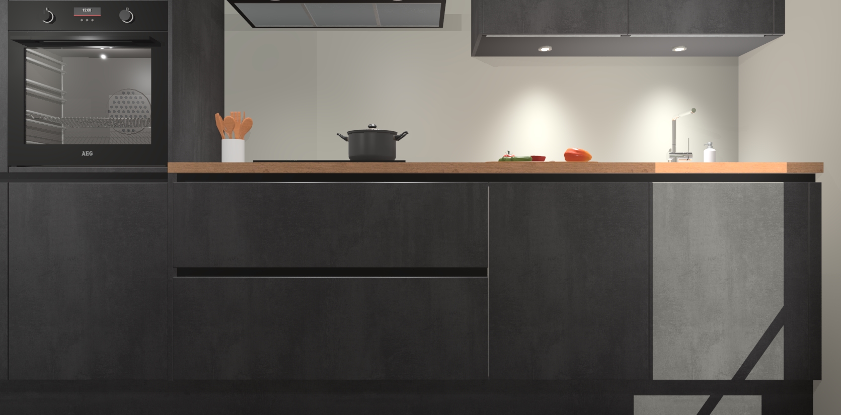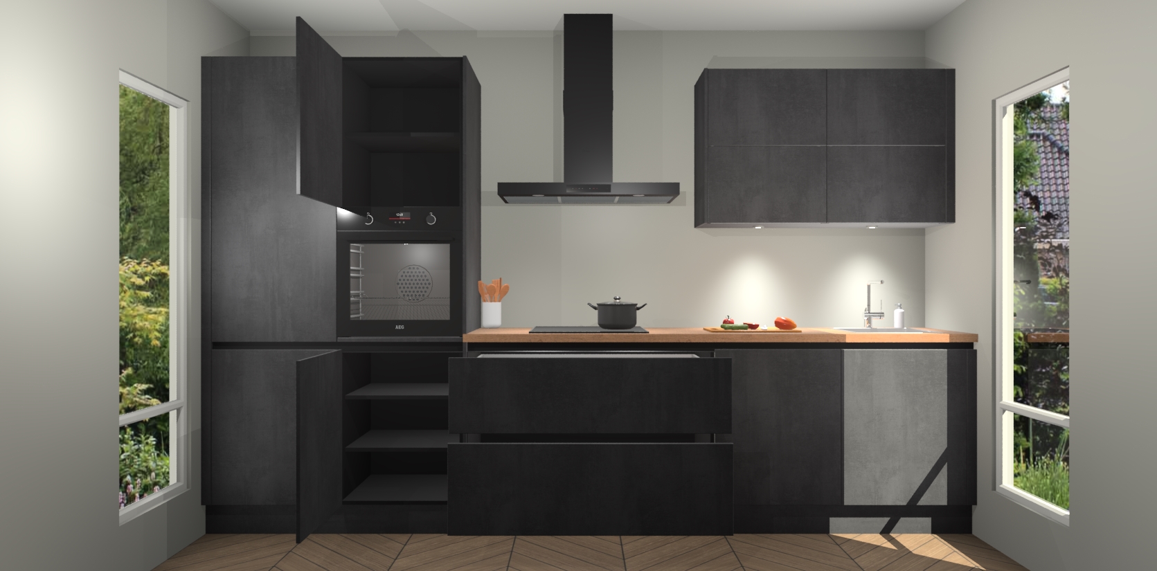 Maak kennis met de nieuwe Beton Zwarte greeploze Keuken Parijs - de perfecte designcombinatie van gemak, moderne elegantie en ultramodern design. Met een gemakkelijk te reinigen Beton Zwarte afwerking, zal de slankheid van deze keuken zeker een vleugje luxe toevoegen aan elke ruimte die hij inneemt.