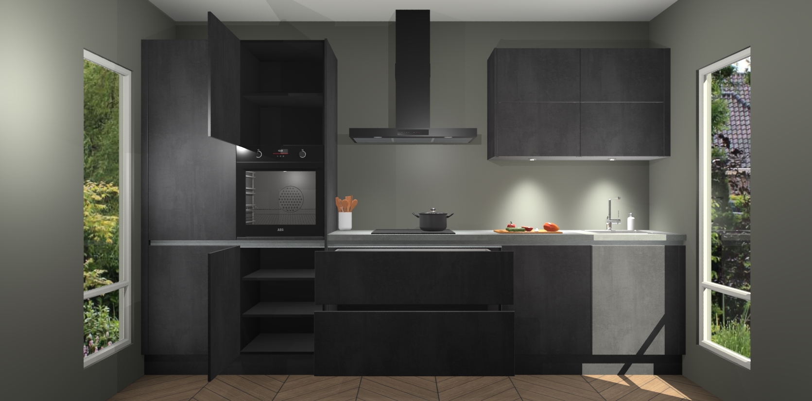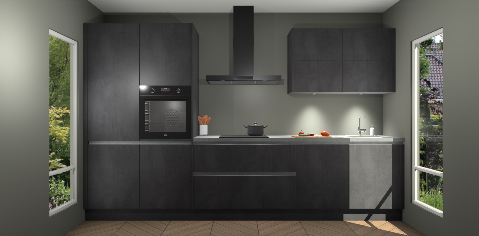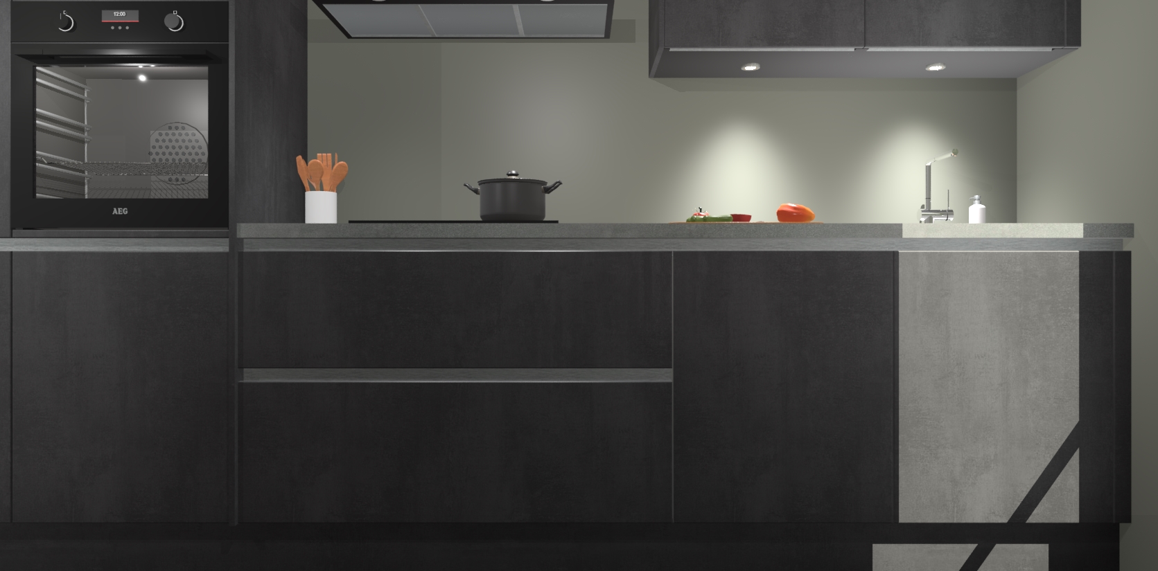 Maak kennis met de nieuwe Beton Zwarte greeploze Keuken Parijs - de perfecte designcombinatie van gemak, moderne elegantie en ultramodern design. Met een gemakkelijk te reinigen Beton Zwarte afwerking, zal de slankheid van deze keuken zeker een vleugje luxe toevoegen aan elke ruimte die hij inneemt.