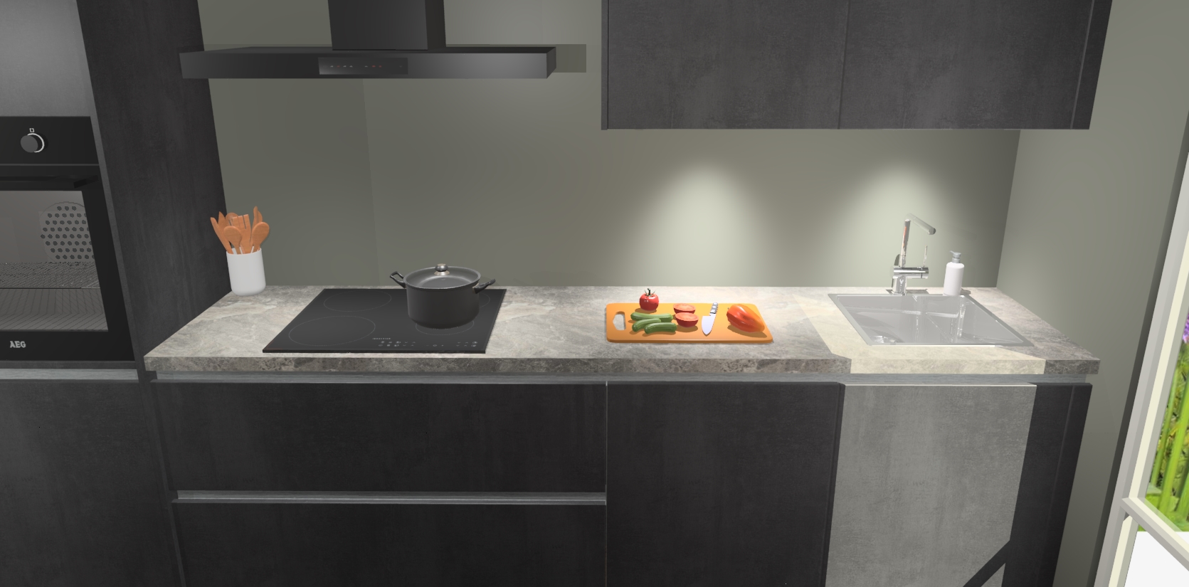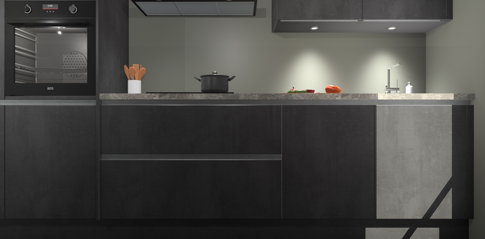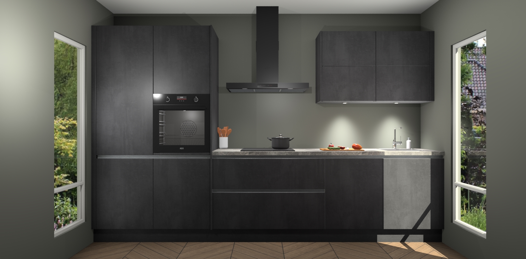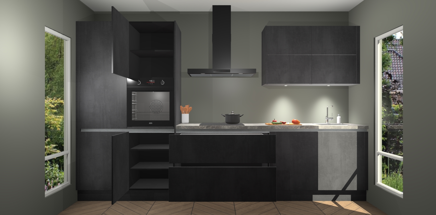 Maak kennis met de nieuwe Beton Zwarte greeploze Keuken Parijs - de perfecte designcombinatie van gemak, moderne elegantie en ultramodern design. Met een gemakkelijk te reinigen Beton Zwarte afwerking, zal de slankheid van deze keuken zeker een vleugje luxe toevoegen aan elke ruimte die hij inneemt.
