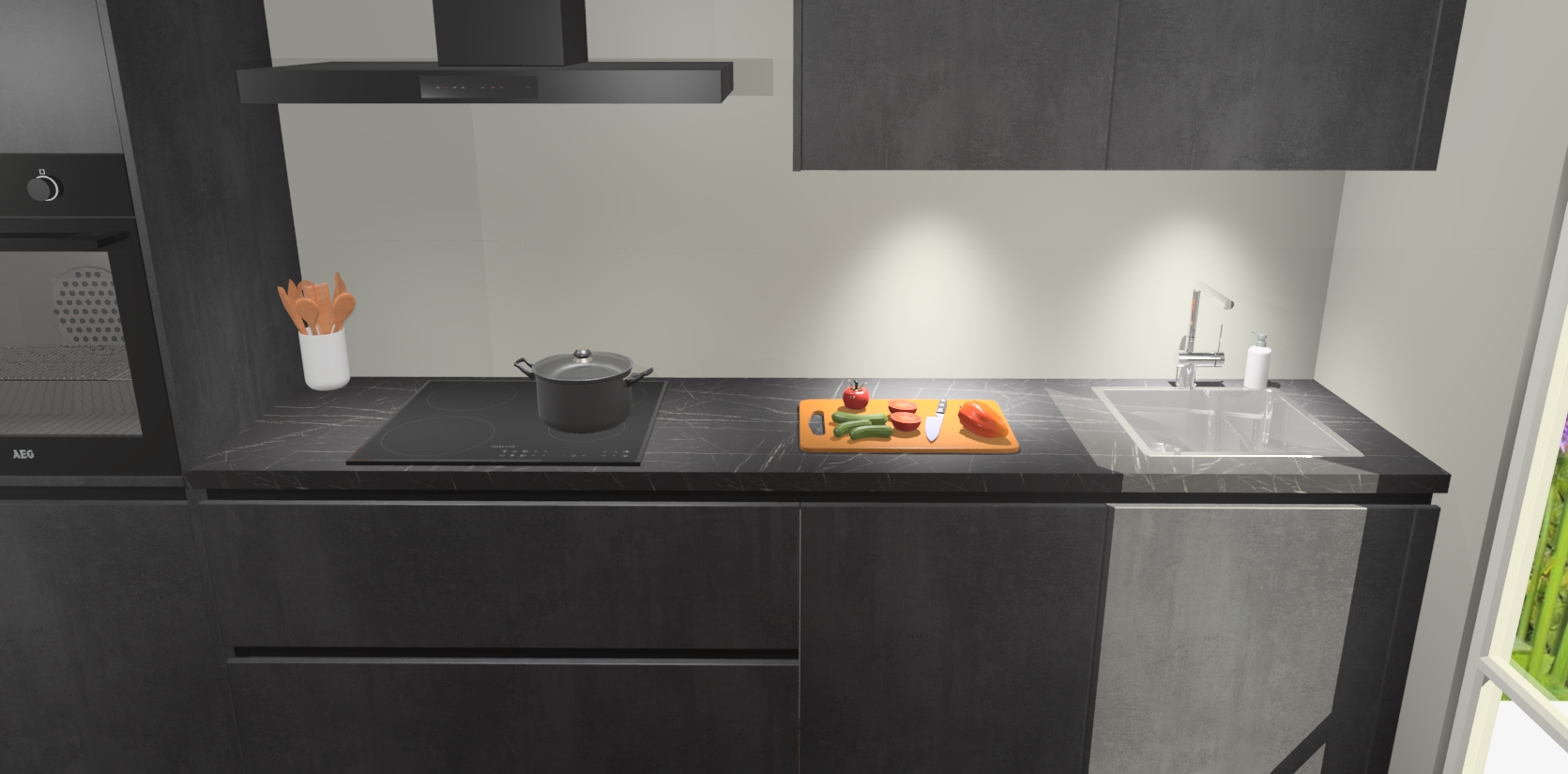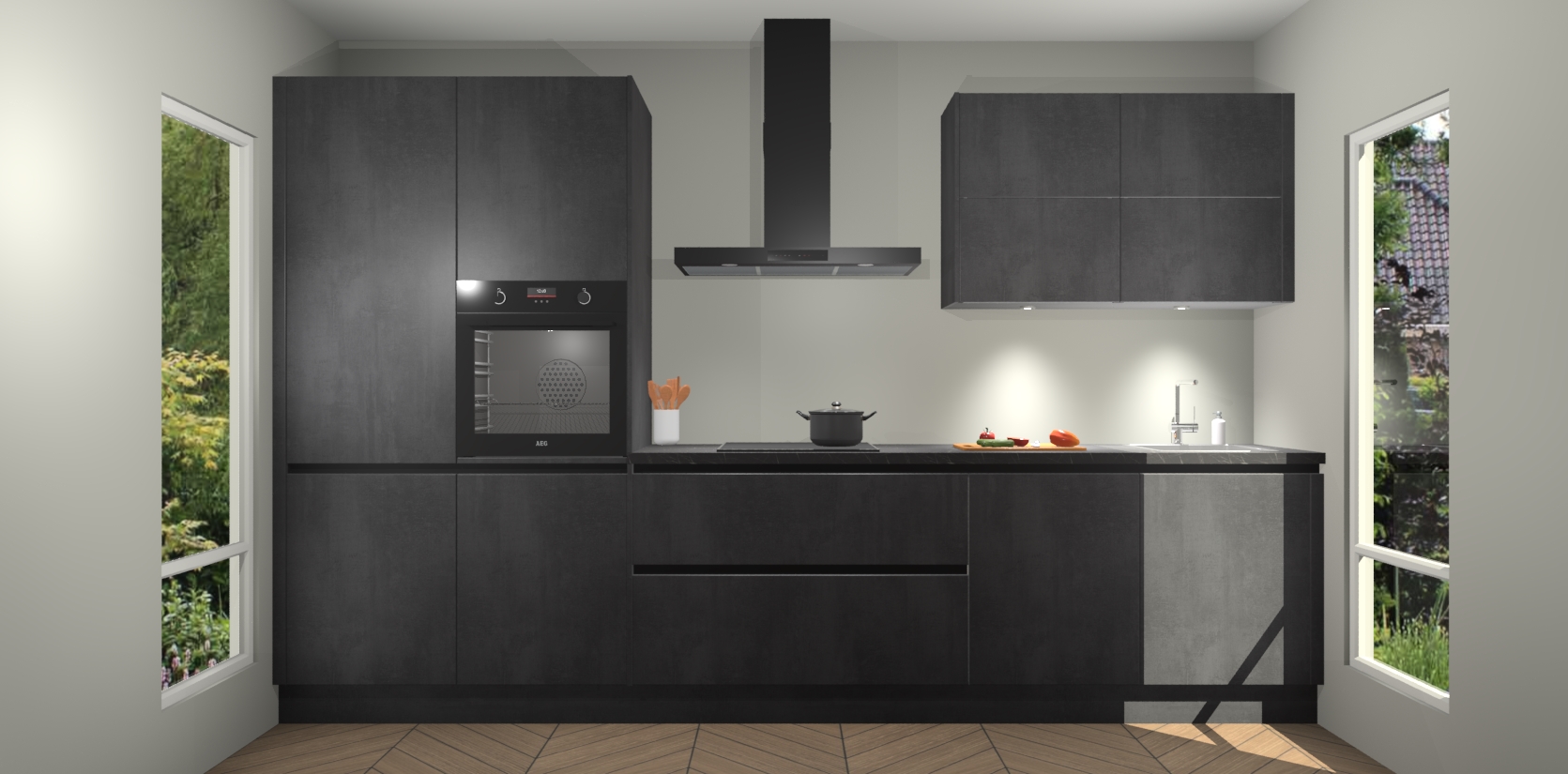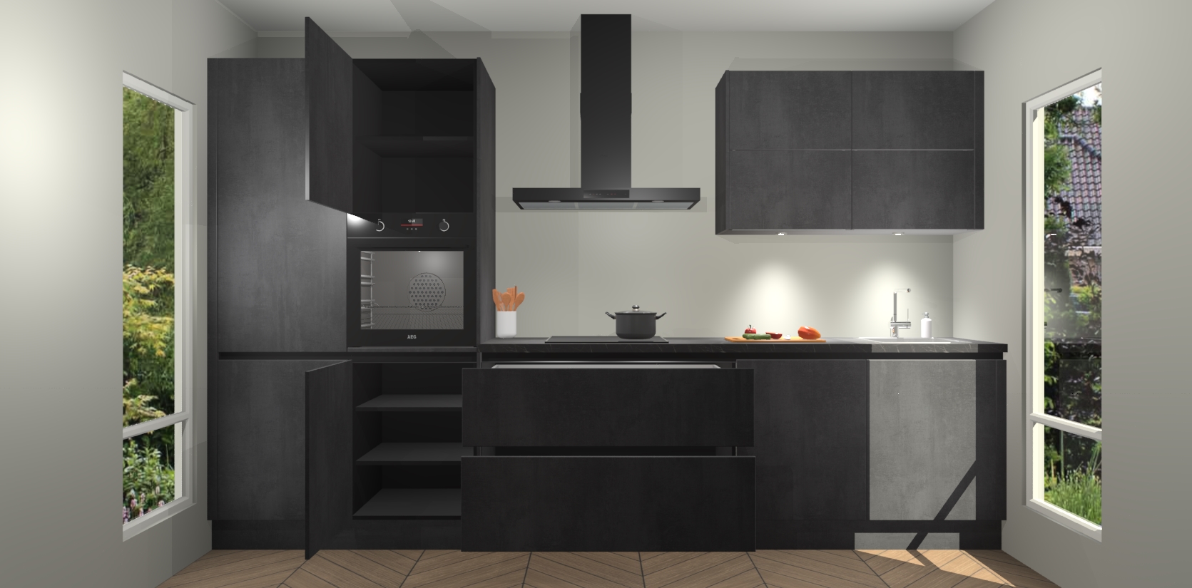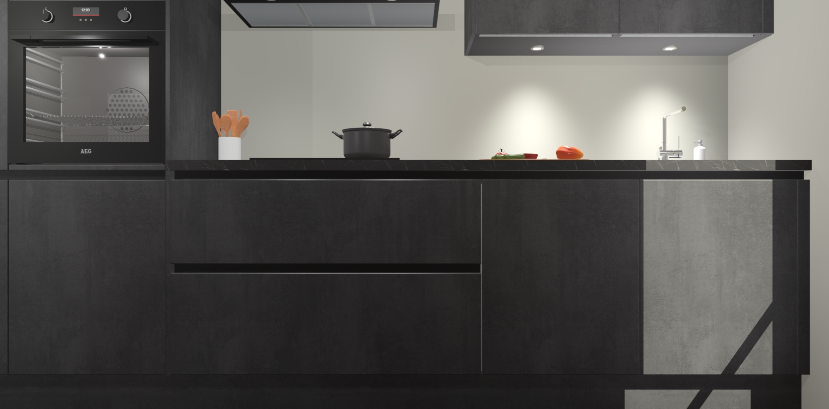 Maak kennis met de nieuwe Beton Zwarte greeploze Keuken Parijs - de perfecte designcombinatie van gemak, moderne elegantie en ultramodern design. Met een gemakkelijk te reinigen Beton Zwarte afwerking, zal de slankheid van deze keuken zeker een vleugje luxe toevoegen aan elke ruimte die hij inneemt.