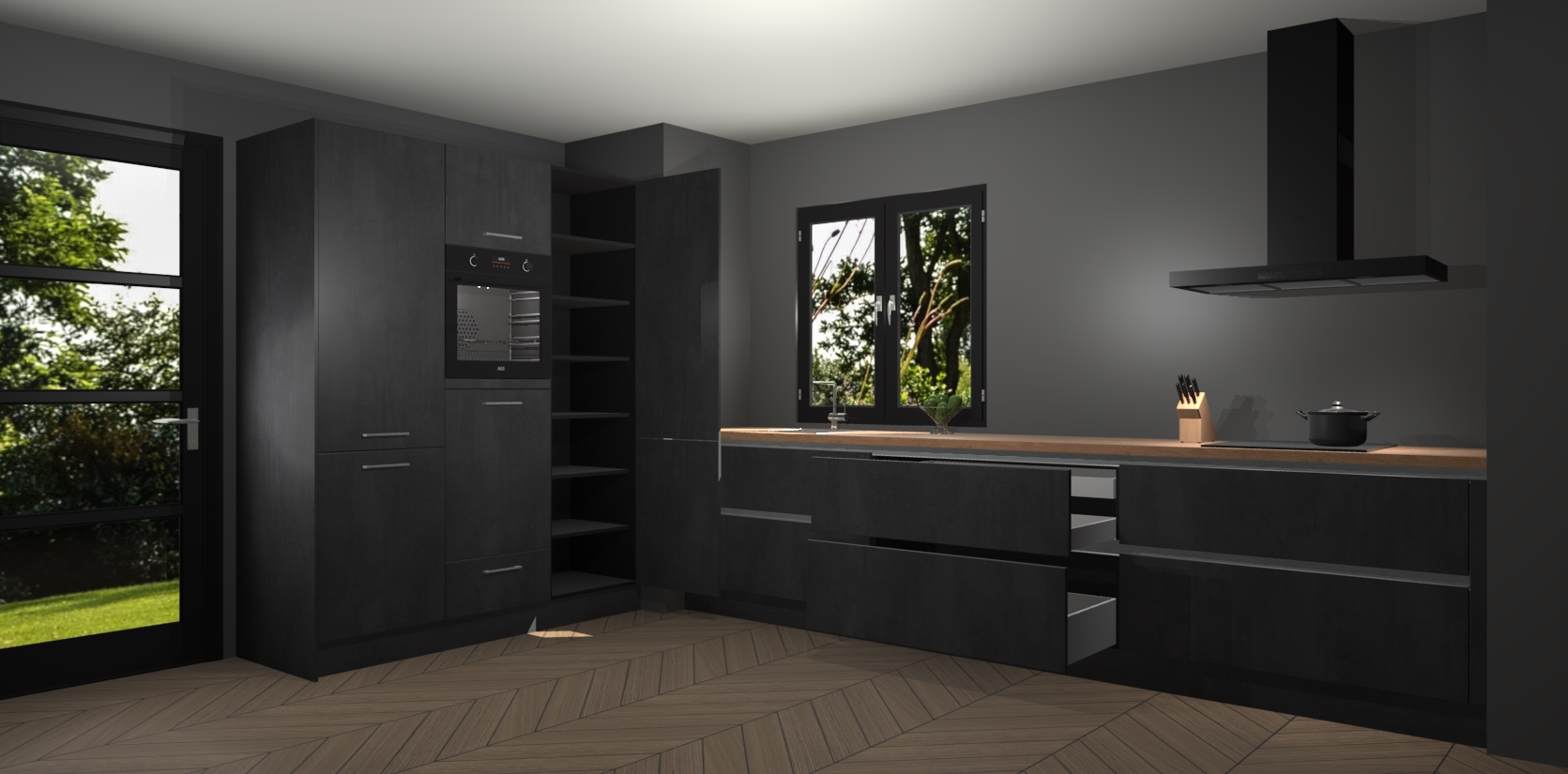 Maak van uw keuken een plek waar u trots op bent - trakteer uzelf vandaag nog op de kwaliteit en elegantie van de Beton Zwarte greeploze keuken Taipei !