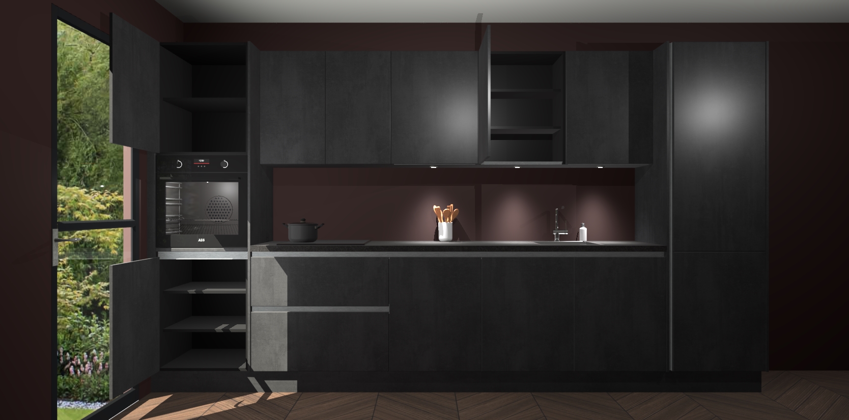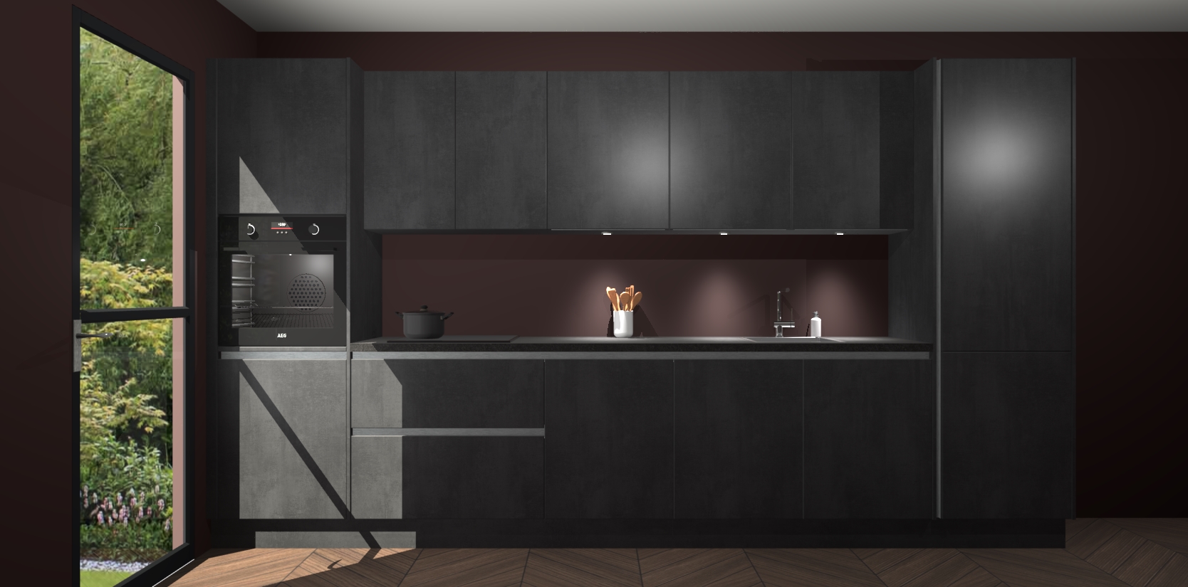 Dit is de perfecte keuken voor wie op zoek is naar een luxueuze stijl zonder zijn portemonnee te legen! Het chique ontwerp van de beton zwarte greeploze keuken Wels voegt dat vleugje verfijning toe aan elk huis. Het gemak van voorgemonteerde kasten bespaart u talloze uren tijd en energie, zodat u veel sneller dan verwacht kunt beginnen te genieten van uw prachtige nieuwe keuken. Bovendien bedraagt de levertijd slechts 7 weken.