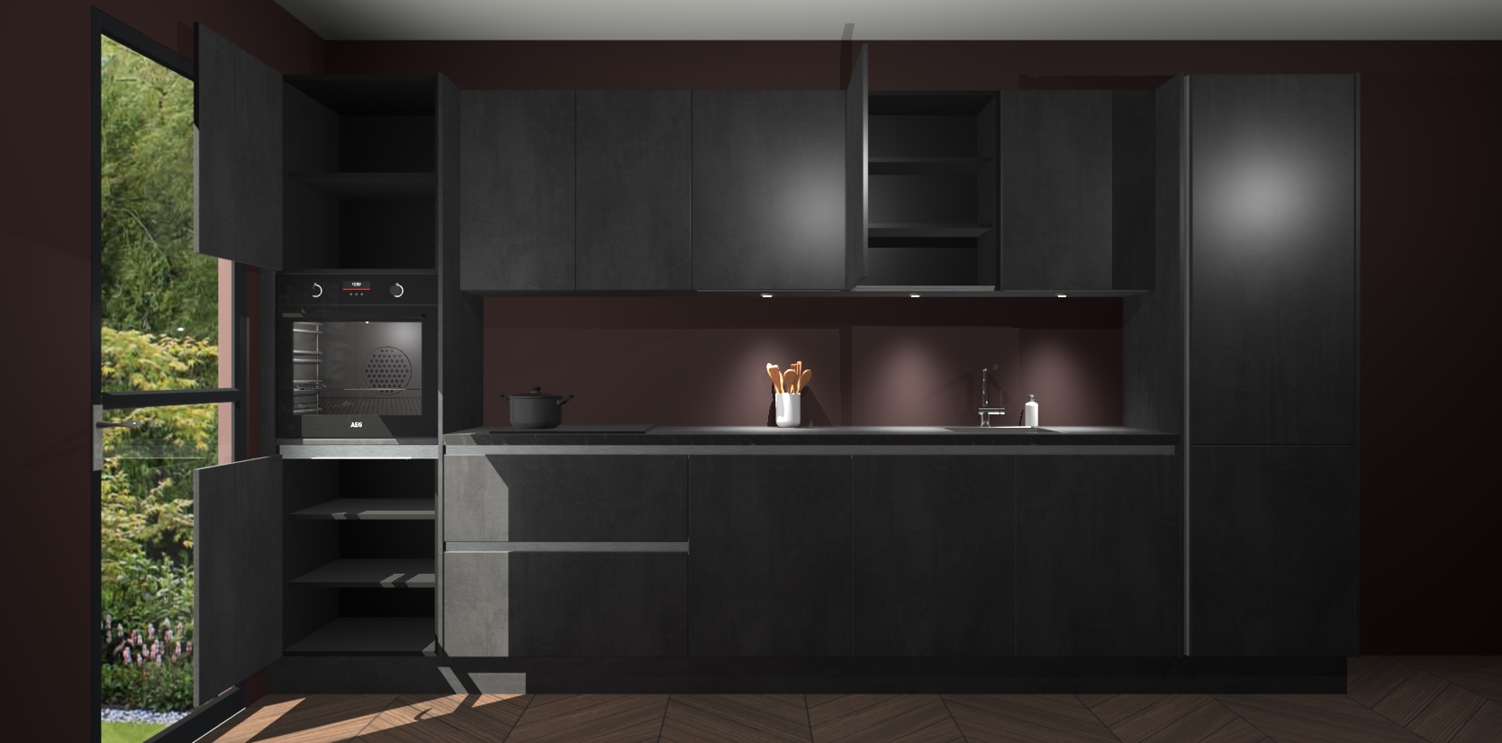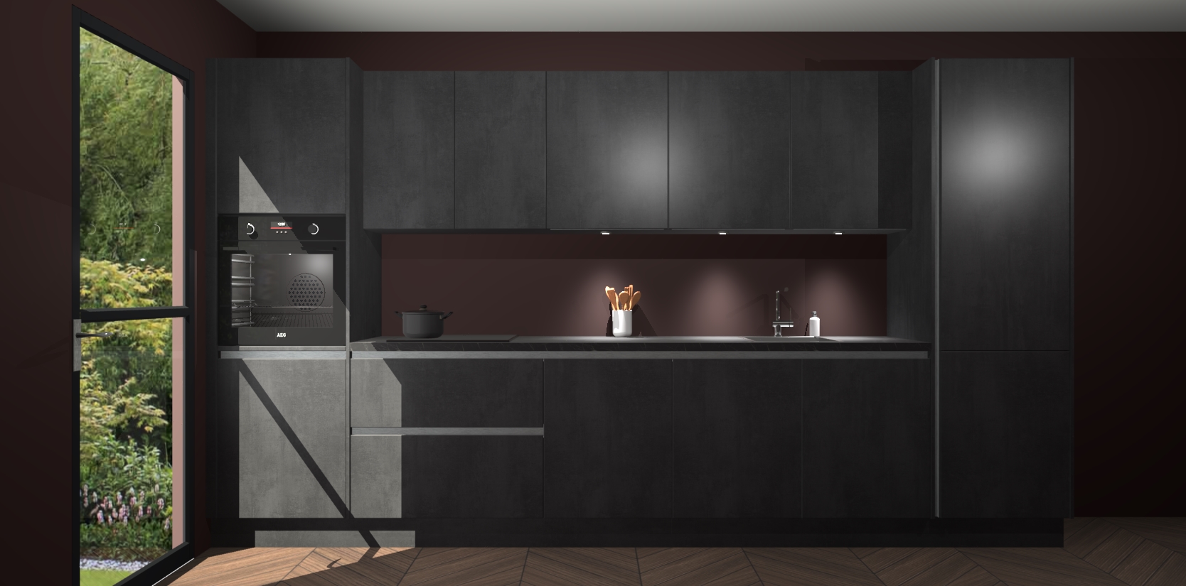 Dit is de perfecte keuken voor wie op zoek is naar een luxueuze stijl zonder zijn portemonnee te legen! Het chique ontwerp van de beton zwarte greeploze keuken Wels voegt dat vleugje verfijning toe aan elk huis. Het gemak van voorgemonteerde kasten bespaart u talloze uren tijd en energie, zodat u veel sneller dan verwacht kunt beginnen te genieten van uw prachtige nieuwe keuken. Bovendien bedraagt de levertijd slechts 7 weken.
