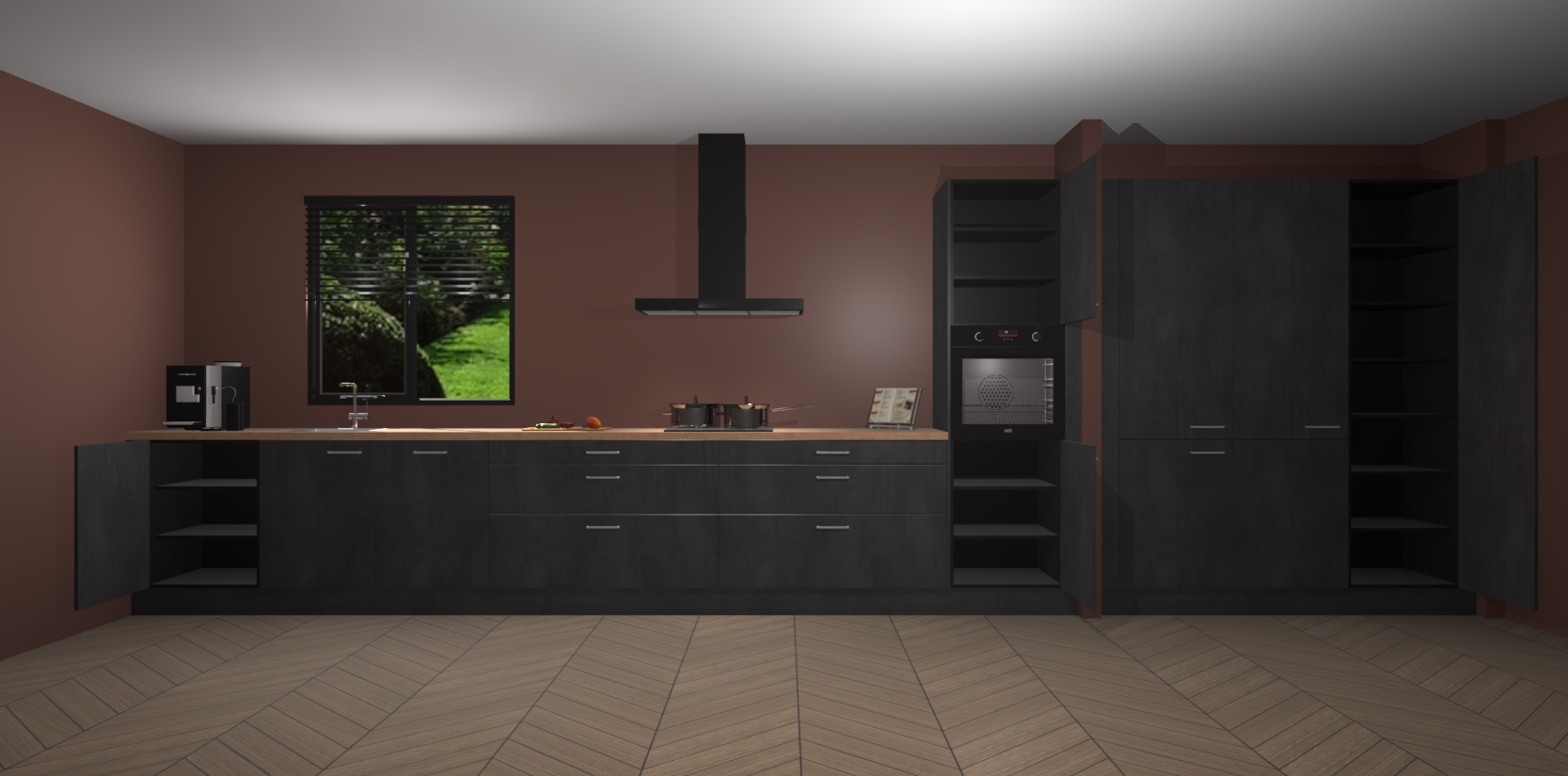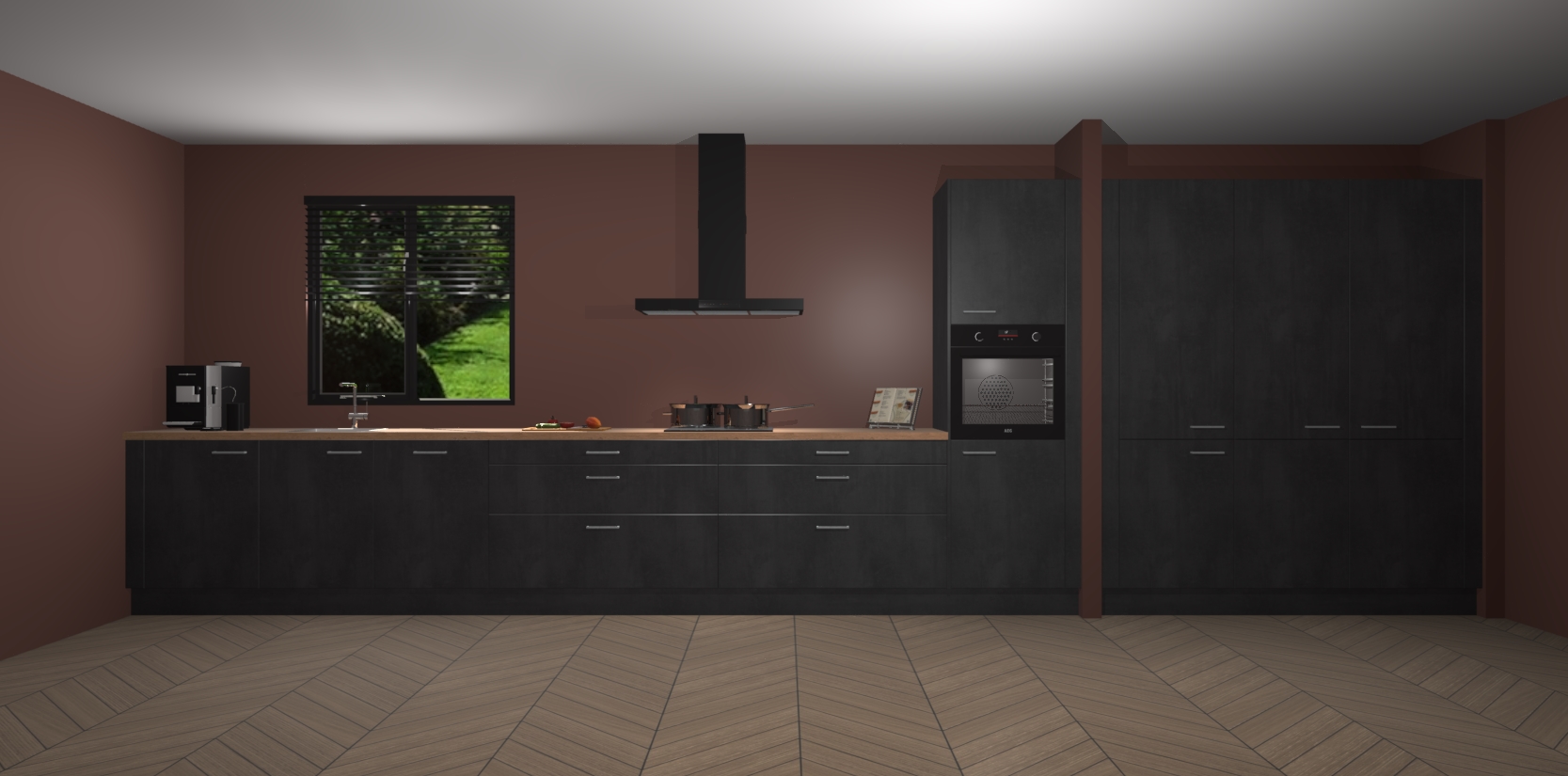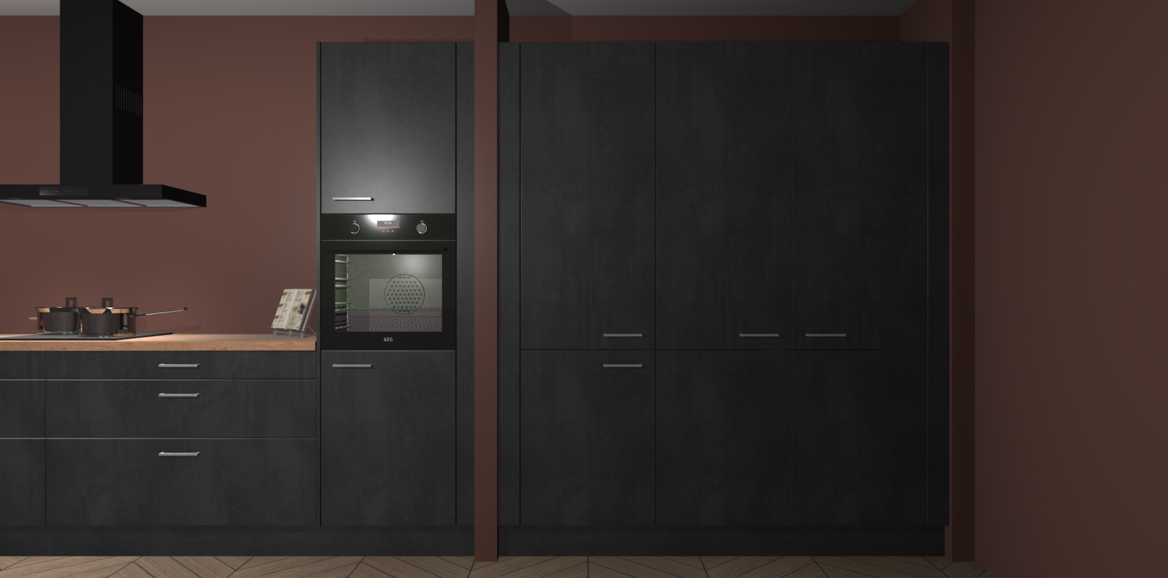 Dus waarom wachten? Maak indruk op uw gasten met een tijdloos chique Beton Zwarte keuken Angola! Dit luxueuze ontwerp zal zeker de aandacht trekken. Koop de uwe vandaag nog, zolang de voorraad strekt!